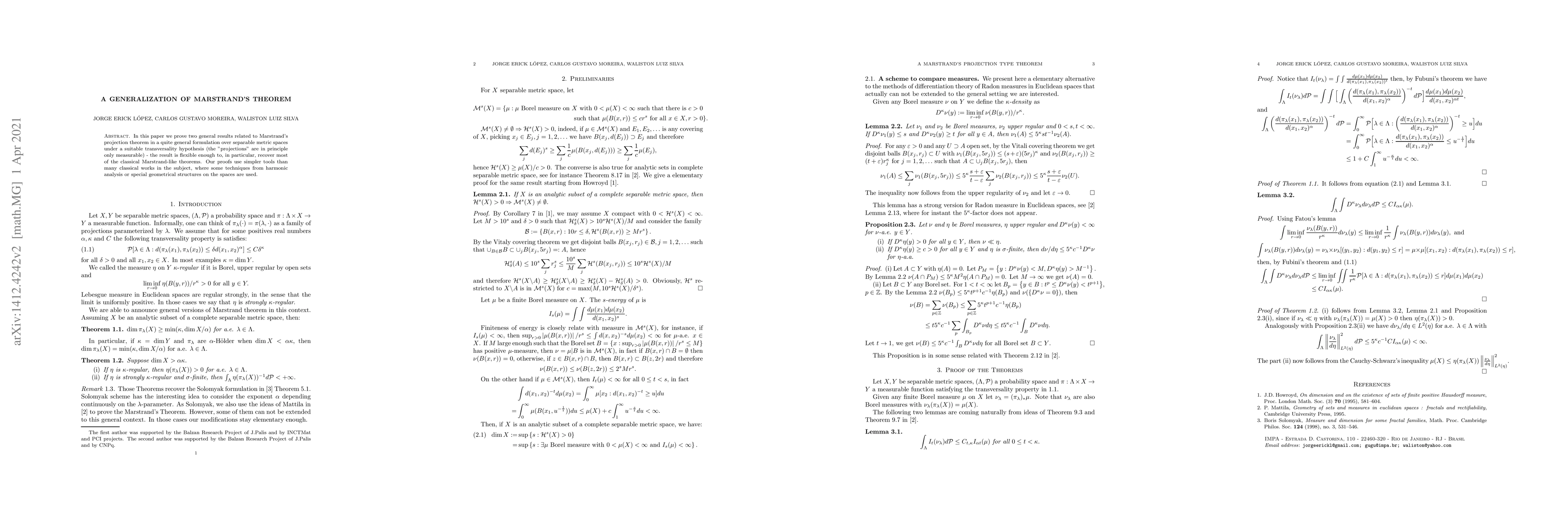 Researchers prove general results on Marstrand's projection theorem in separable metric spaces with a suitable transversality hypothesis, recovering most classical theorems with simpler tools than traditional methods.