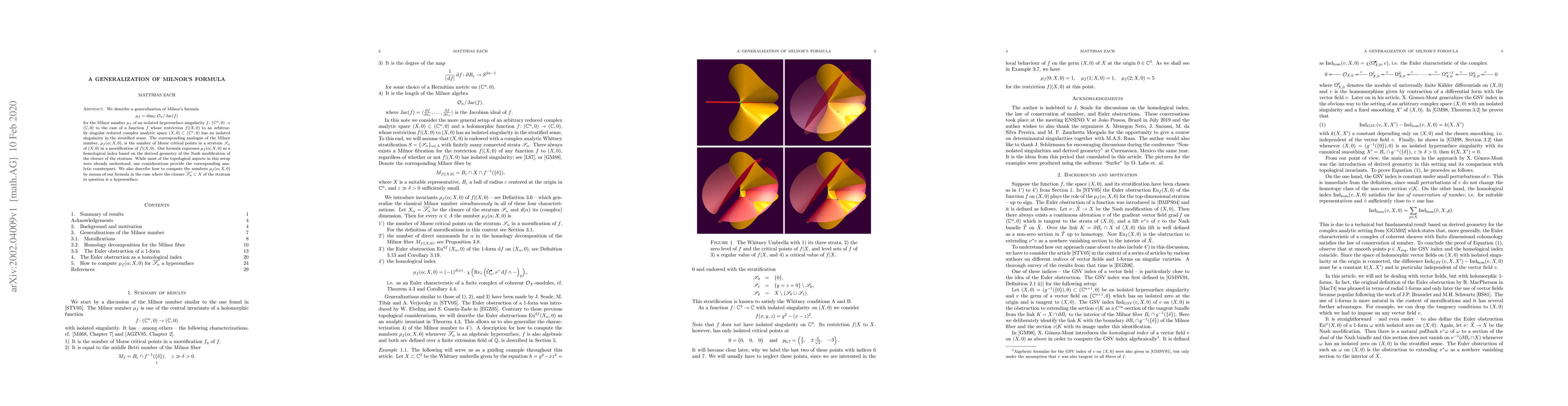 We describe a generalization of Milnor's formula for the Milnor number of an isolated hypersurface singularity to the case of a function $f$ whose restriction $f|(X,0)$ to an arbitrarily singular reduced complex analytic space $(X,0) \subset (\mathbb C^n,0)$ has an isolated singularity in the stratified sense. The corresponding analogue of the Milnor number, $\mu_f(\alpha;X,0)$, is the number of Morse critical points in a stratum $\mathscr S_\alpha$ of $(X,0)$ in a morsification of $f|(X,0)$. Our formula expresses $\mu_f(\alpha;X,0)$ as a homological index based on the derived geometry of the Nash modification of the closure of the stratum $\mathscr S_\alpha$. While most of the topological aspects in this setup were already understood, our considerations provide the corresponding analytic counterpart. We also describe how to compute the numbers $\mu_f(\alpha;X,0)$ by means of our formula in the case where the closure $\overline{ \mathscr S_\alpha} \subset X$ of the stratum in question is a hypersurface.