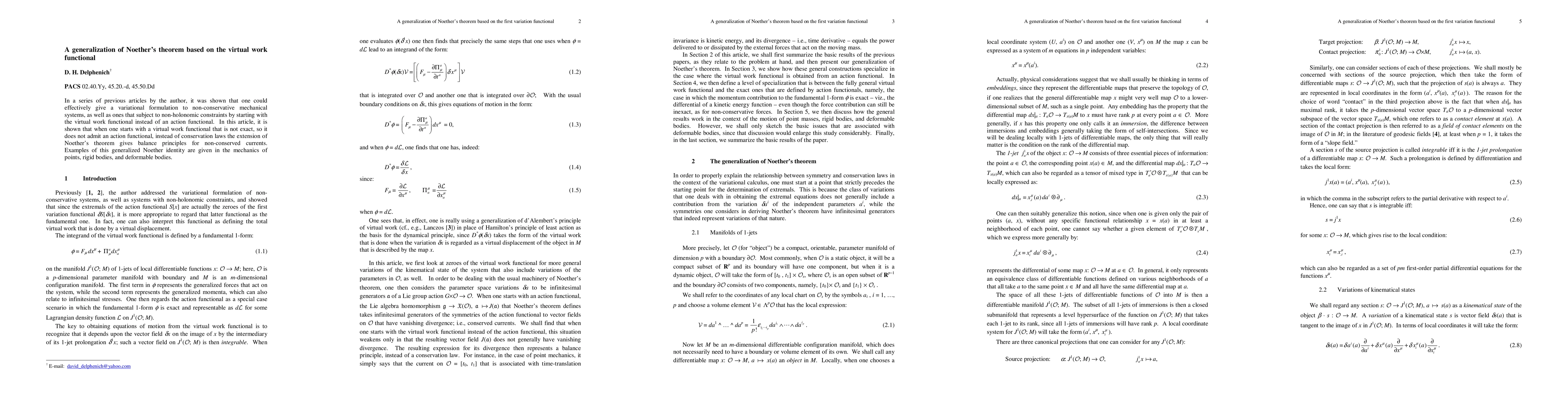 This paper extends Noether's theorem to non-conservative mechanical systems using the virtual work functional, deriving balance principles for non-conserved currents instead of conservation laws. Examples from point mechanics, rigid bodies, and deformable bodies illustrate the application of this generalized approach.