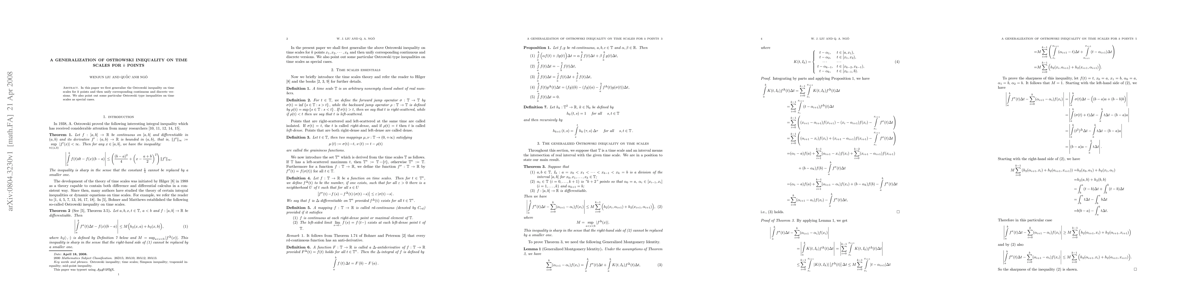 This paper generalizes Ostrowski inequality to time scales for k points, unifying continuous and discrete versions, with implications for specific inequalities on time scales.
