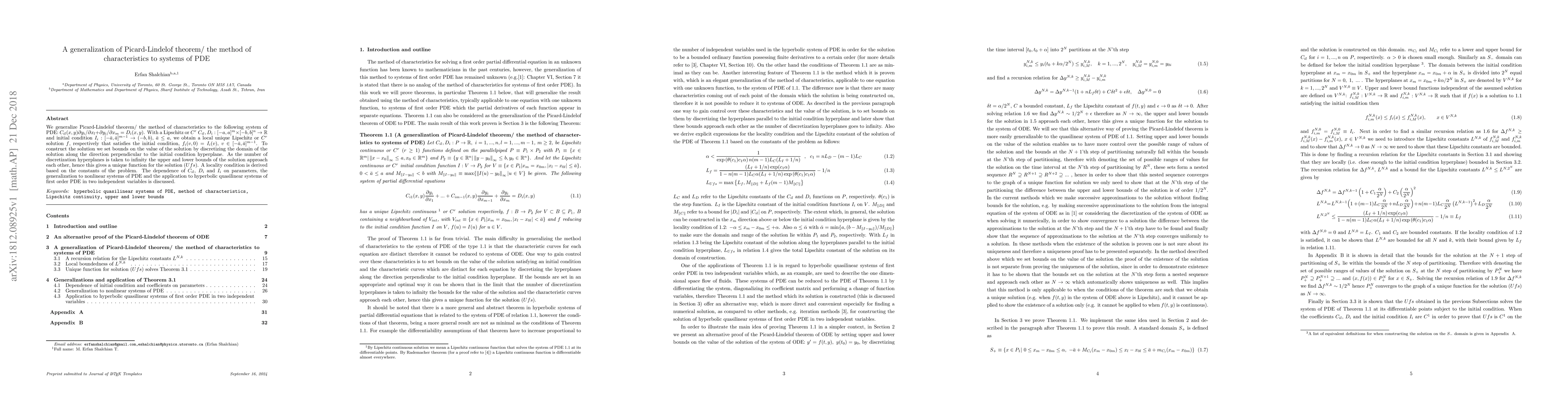 This paper generalizes the Picard-Lindelof theorem and the method of characteristics to systems of partial differential equations (PDEs). It establishes local unique solutions for a specified system of PDEs under Lipschitz or $C^r$ conditions, using discretization techniques to converge bounds and derive a unique solution function.