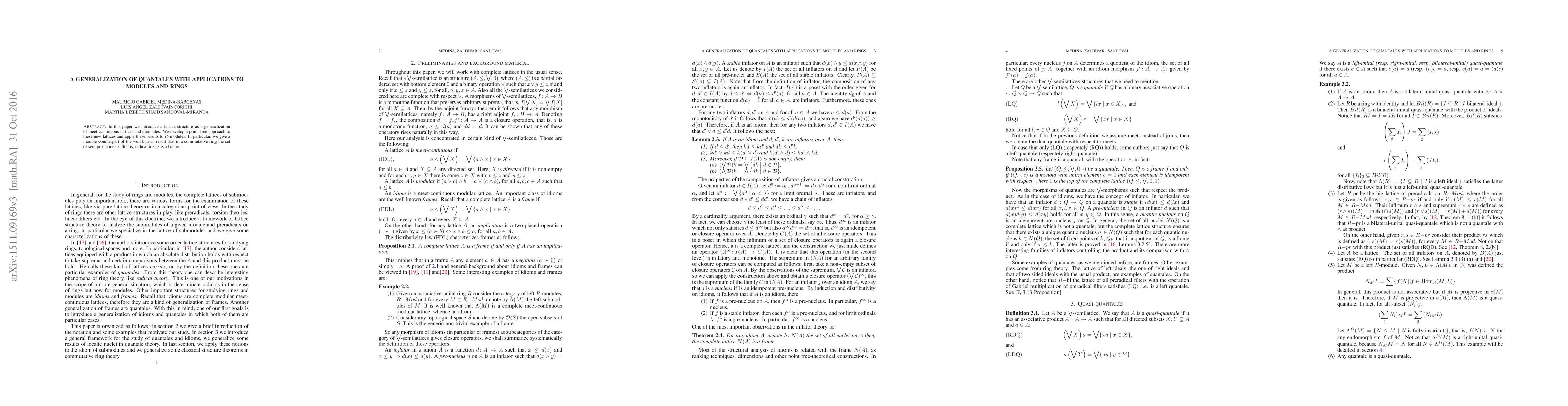 We introduce a lattice structure as a generalization of meet-continuous lattices and quantales. We develop a point-free approach to these new lattices and apply these results to $R$-modules. In particular, we give the module counterpart of the well known result that in a commutative ring the set of semiprime ideals, that is, the set of radical ideals is a frame.