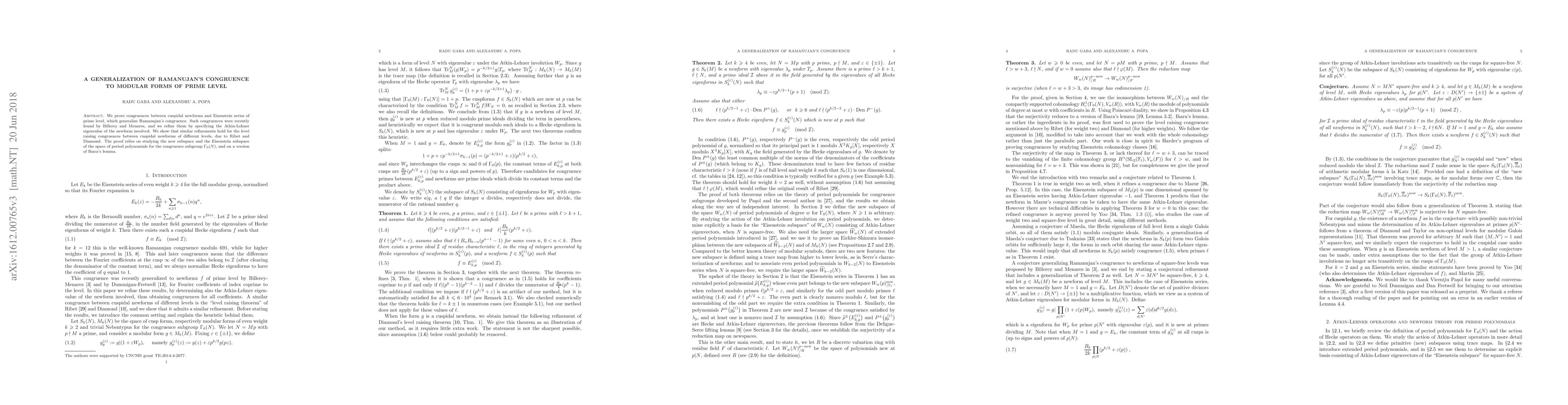 We prove congruences between cuspidal newforms and Eisenstein series of prime level, which generalize Ramanujan's congruence. Such congruences were recently found by Billerey and Menares, and we refine them by specifying the Atkin-Lehner eigenvalue of the newform involved. We show that similar refinements hold for the level raising congruences between cuspidal newforms of different levels, due to Ribet and Diamond. The proof relies on studying the new subspace and the Eisenstein subspace of the space of period polynomials for the congruence subgroup $\Gamma_0(N)$, and on a version of Ihara's lemma.