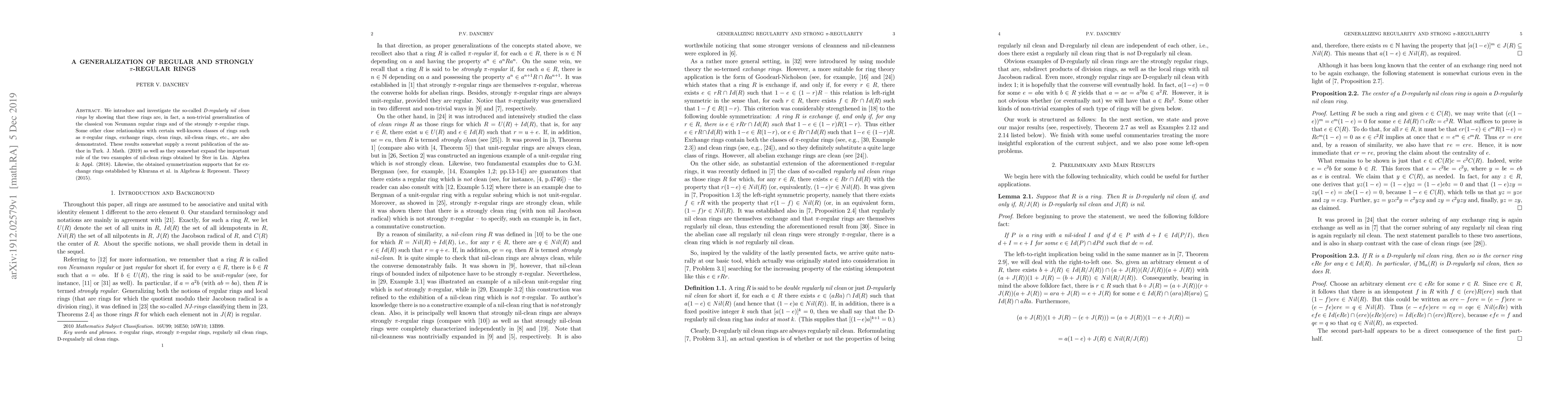 This paper introduces D-regularly nil clean rings, presenting them as a non-trivial generalization of von Neumann regular rings and strongly $\pi$-regular rings. It also establishes connections with other ring classes, expanding upon previous research and supporting related findings from prior publications.