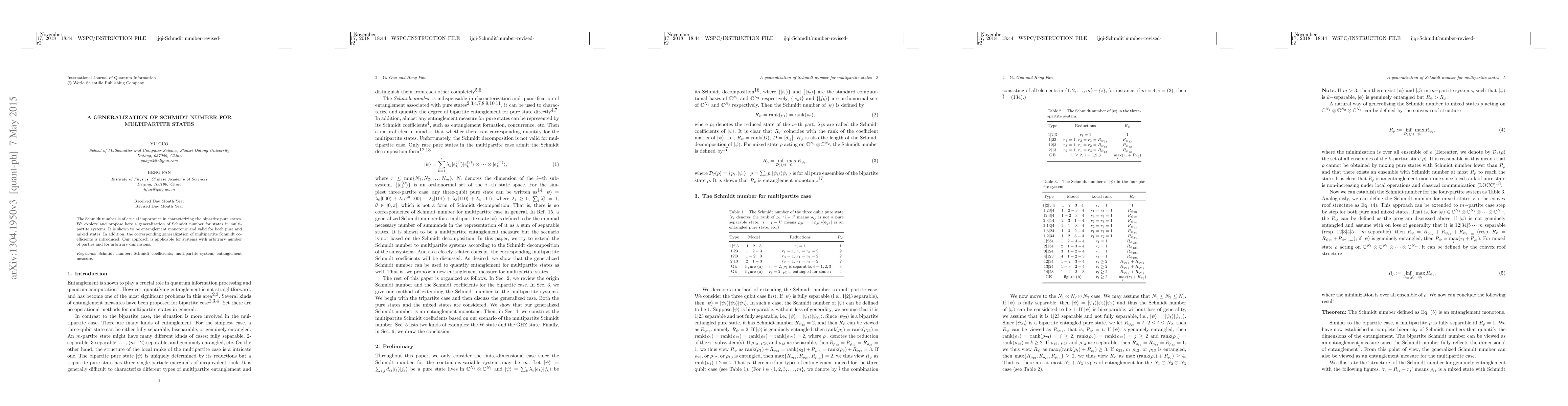 This paper proposes a generalization of the Schmidt number for multipartite quantum states, demonstrating its entanglement monotonicity and applicability to both pure and mixed states. The study also introduces multipartite Schmidt coefficients, applicable to systems with any number of parties and dimensions.