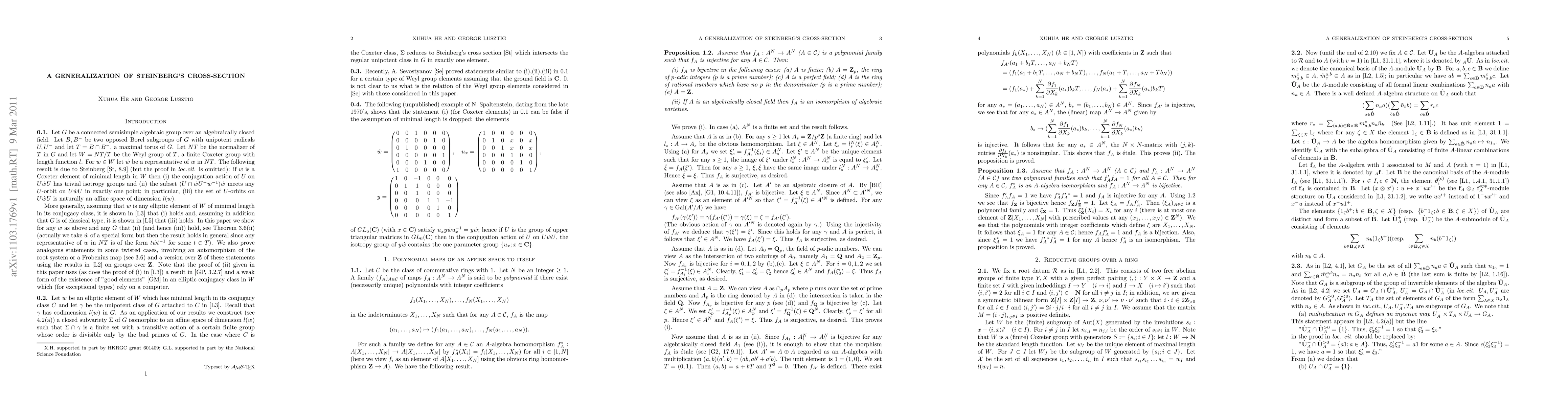 Let G be a semisimple group over an algebraically closed field. Steinberg has associated to a Coxeter element w of minimal length r a subvariety V of G isomorphic to an affine space of dimension r which meets the regular unipotent class Y in exactly one point. In this paper this is generalized to the case where w is replaced by any elliptic element in the Weyl group of minimal length d in its conjugacy class, V is replaced by a subvariety V' of G isomorphic to an affine space of dimension d and Y is replaced by a unipotent class Y' of codimension d in such a way that the intersection of V' and Y' is finite.