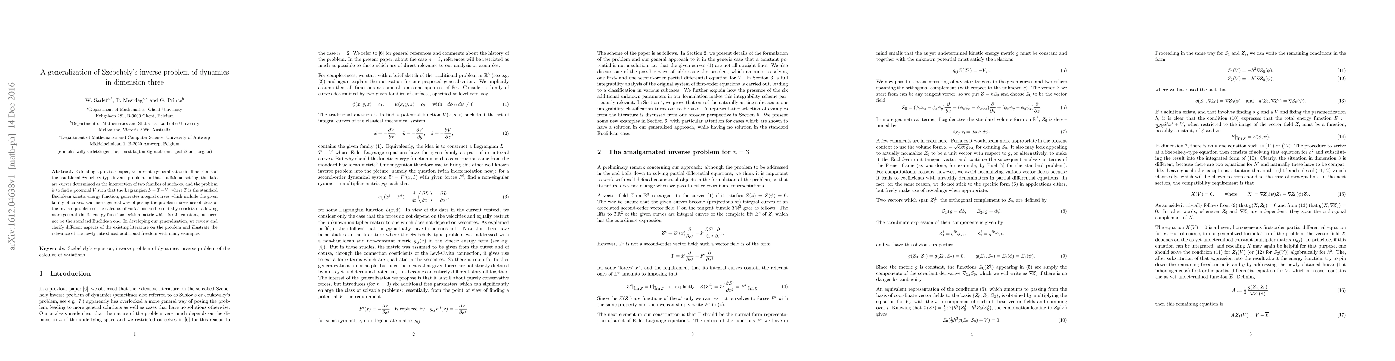 Extending a previous paper, we present a generalization in dimension 3 of the traditional Szebehely-type inverse problem. In that traditional setting, the data are curves determined as the intersection of two families of surfaces, and the problem is to find a potential V such that the Lagrangian L = T - V, where T is the standard Euclidean kinetic energy function, generates integral curves which include the given family of curves. Our more general way of posing the problem makes use of ideas of the inverse problem of the calculus of variations and essentially consists of allowing more general kinetic energy functions, with a metric which is still constant, but need not be the standard Euclidean one. In developing our generalization, we review and clarify different aspects of the existing literature on the problem and illustrate the relevance of the newly introduced additional freedom with many examples.