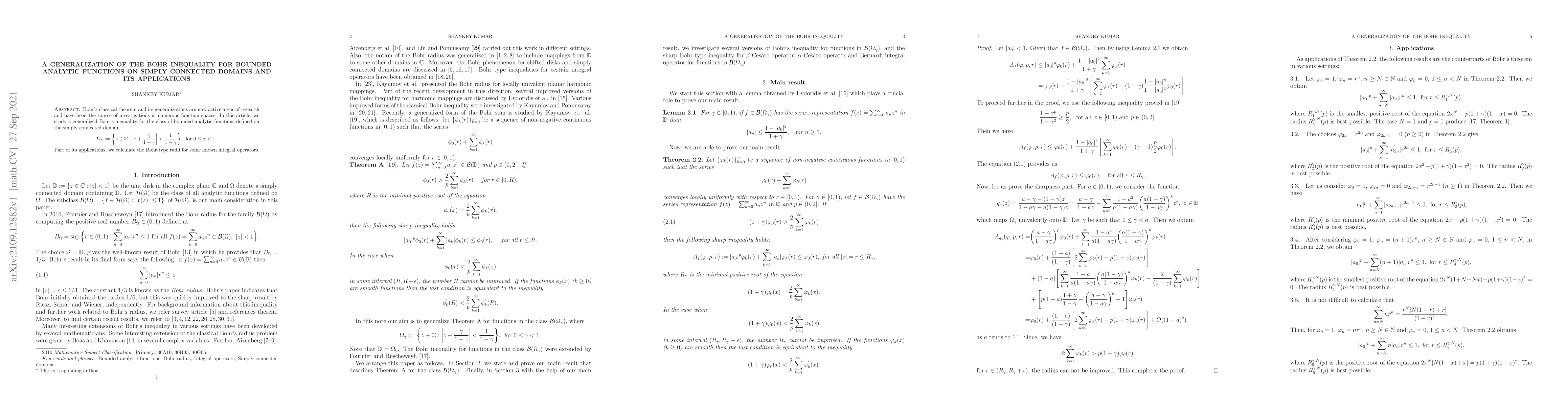 This paper generalizes Bohr's inequality for bounded analytic functions on the domain $\Omega_{\gamma}$ and explores its applications, including calculating Bohr-type radii for specific integral operators. The study extends classical results to new function spaces and domains.