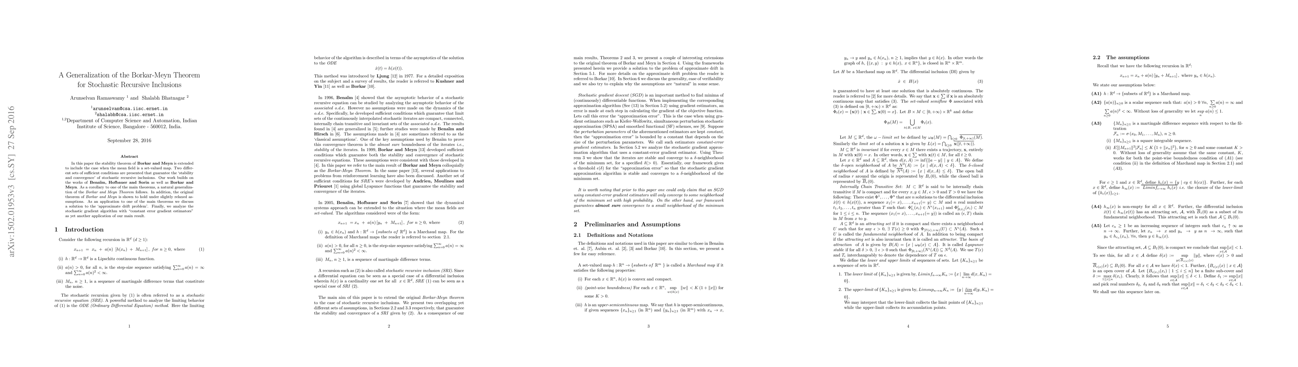 In this paper the stability theorem of Borkar and Meyn is extended to include the case when the mean field is a differential inclusion. Two different sets of sufficient conditions are presented that guarantee the stability and convergence of stochastic recursive inclusions. Our work builds on the works of Benaim, Hofbauer and Sorin as well as Borkar and Meyn. As a corollary to one of the main theorems, a natural generalization of the Borkar and Meyn Theorem follows. In addition, the original theorem of Borkar and Meyn is shown to hold under slightly relaxed assumptions. Finally, as an application to one of the main theorems we discuss a solution to the approximate drift problem.