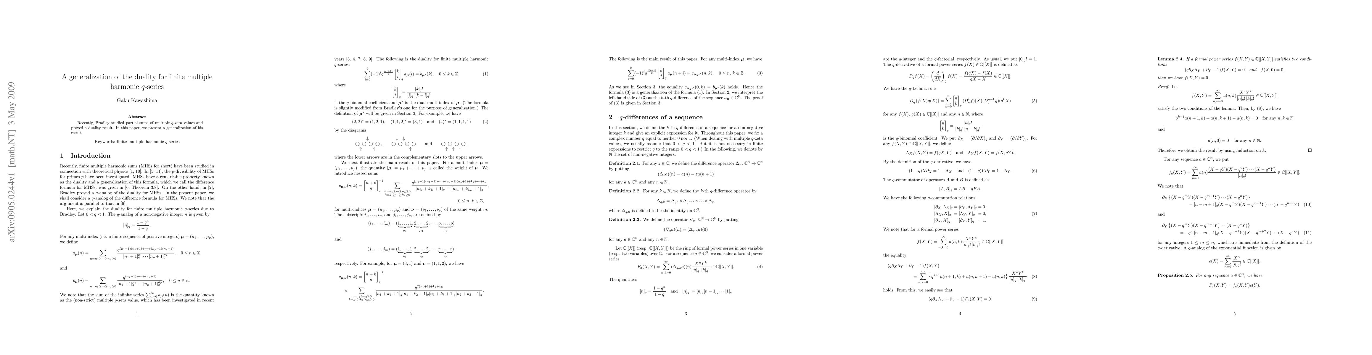 This work extends Bradley's duality result for finite multiple harmonic q-series by providing a more general framework, which may lead to new insights in the study of harmonic sums and their q-analogs.