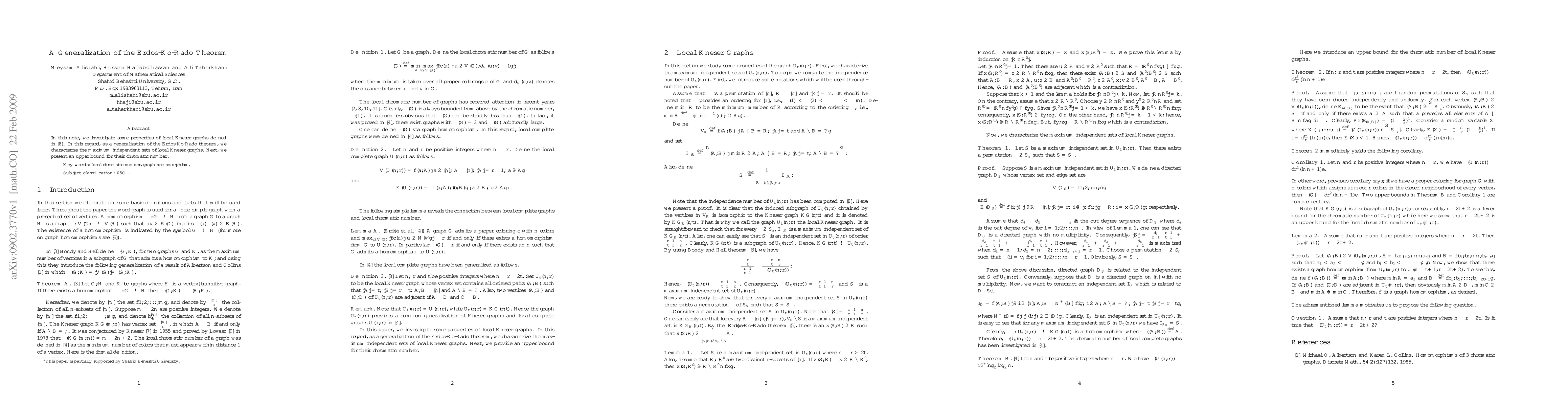 This paper generalizes the Erdős-Ko-Rado theorem to characterize the maximum independent sets of local Kneser graphs and provides an upper bound for their chromatic number. The focus is on properties of these specialized graph structures defined in prior work.