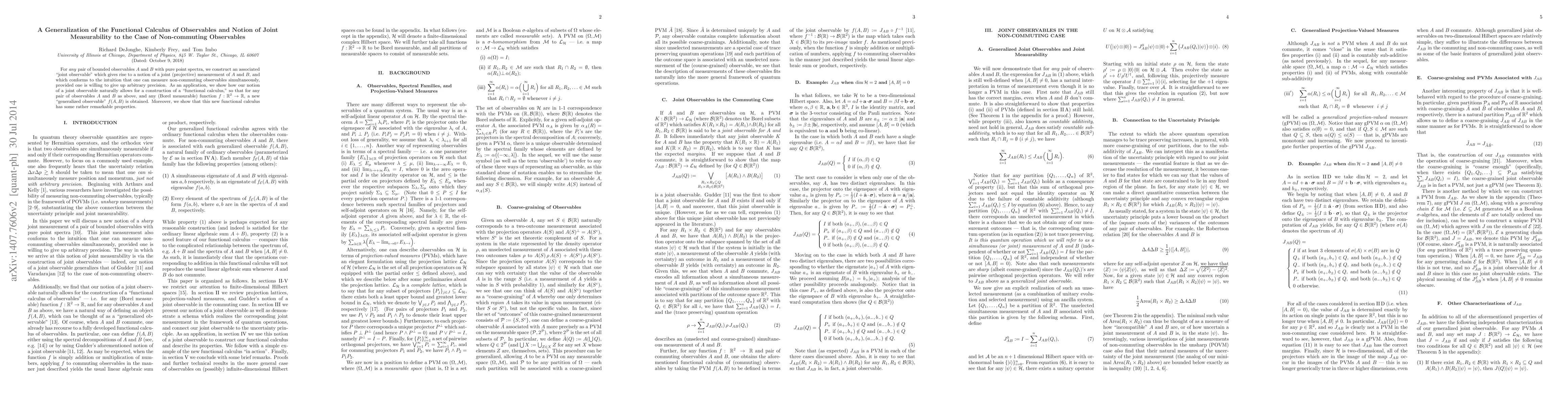 For any pair of bounded observables $A$ and $B$ with pure point spectra, we construct an associated "joint observable" which gives rise to a notion of a joint (projective) measurement of $A$ and $B$, and which conforms to the intuition that one can measure non-commuting observables simultaneously, provided one is willing to give up arbitrary precision. As an application, we show how our notion of a joint observable naturally allows for a construction of a "functional calculus," so that for any pair of observables $A$ and $B$ as above, and any (Borel measurable) function $f: \mathbb{R}^2 \rightarrow \mathbb{R}$, a new "generalized observable" $f(A,B)$ is obtained. Moreover, we show that this new functional calculus has some rather remarkable properties.