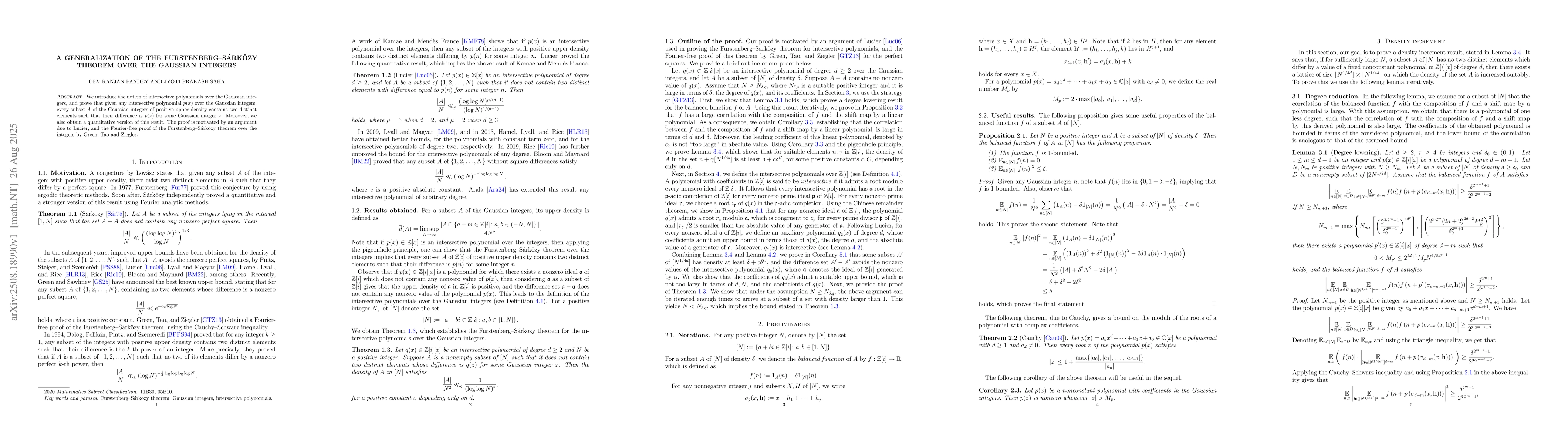 We introduce the notion of intersective polynomials over the Gaussian integers, and prove that given any intersective polynomial $p(x)$ over the Gaussian integers, every subset $A$ of the Gaussian integers of positive upper density contains two distinct elements such that their difference is $p(z)$ for some Gaussian integer $z$. Moreover, we also obtain a quantitative version of this result. The proof is motivated by an argument due to Lucier, and the Fourier-free proof of the Furstenberg--S\'{a}rk\"{o}zy theorem over the integers by Green, Tao and Ziegler.