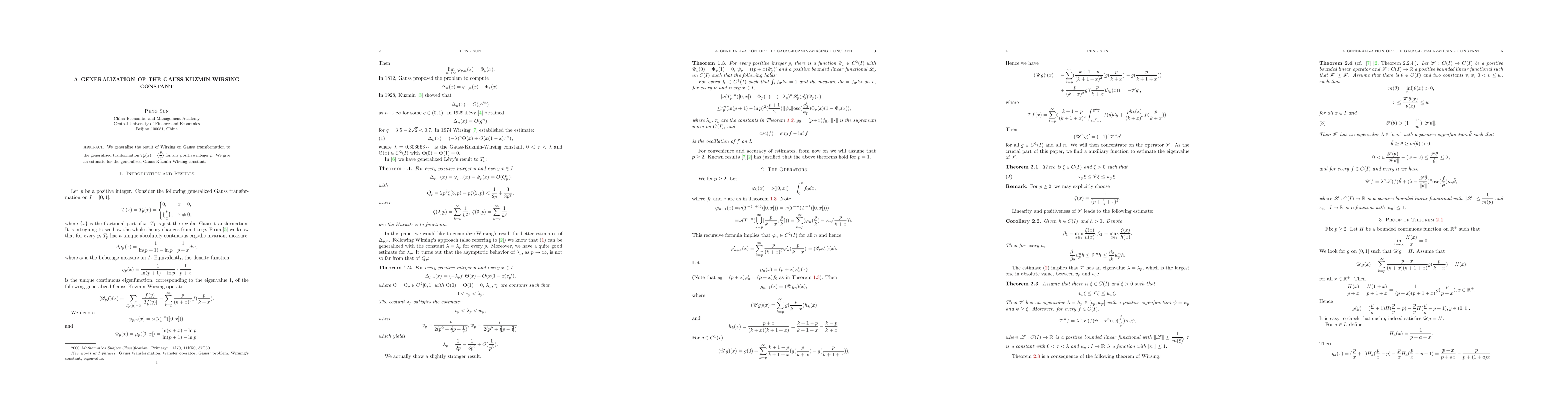 We generalize the result of Wirsing on Gauss transformation to the generalized tranformation $T_p(x)=\{\cfrac{p}{x}\}$ for any positive integer $p$. We give an estimate for the generalized Gauss-Kuzmin-Wirsing constant.
