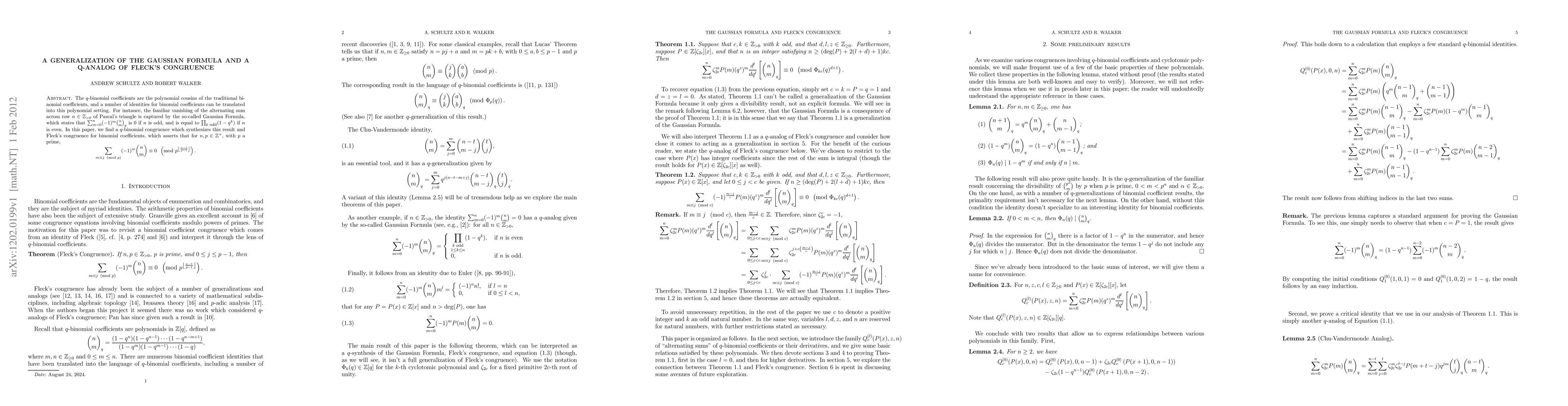 This paper generalizes the Gaussian formula using q-binomial coefficients and presents a q-analog of Fleck's congruence for binomial coefficients, synthesizing both results in a unified framework.