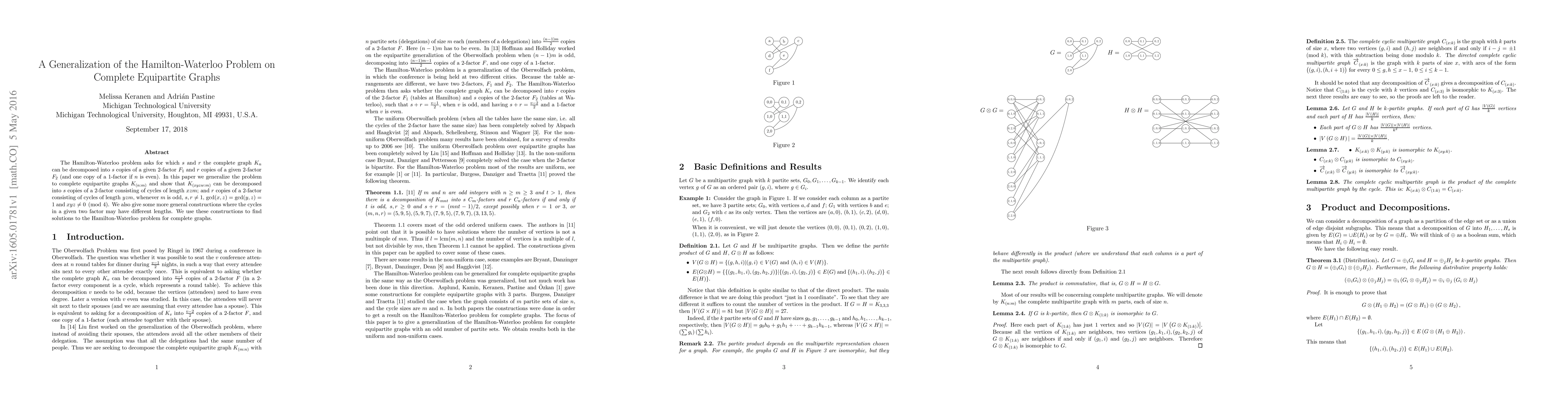The Hamilton-Waterloo problem asks for which $s$ and $r$ the complete graph $K_n$ can be decomposed into $s$ copies of a given 2-factor $F_1$ and $r$ copies of a given 2-factor $F_2$ (and one copy of a 1-factor if $n$ is even). In this paper we generalize the problem to complete equipartite graphs $K_{(n:m)}$ and show that $K_{(xyzw:m)}$ can be decomposed into $s$ copies of a 2-factor consisting of cycles of length $xzm$; and $r$ copies of a 2-factor consisting of cycles of length $yzm$, whenever $m$ is odd, $s,r\neq 1$, $\gcd(x,z)=\gcd(y,z)=1$ and $xyz\neq 0 \pmod 4$. We also give some more general constructions where the cycles in a given two factor may have different lengths. We use these constructions to find solutions to the Hamilton-Waterloo problem for complete graphs.