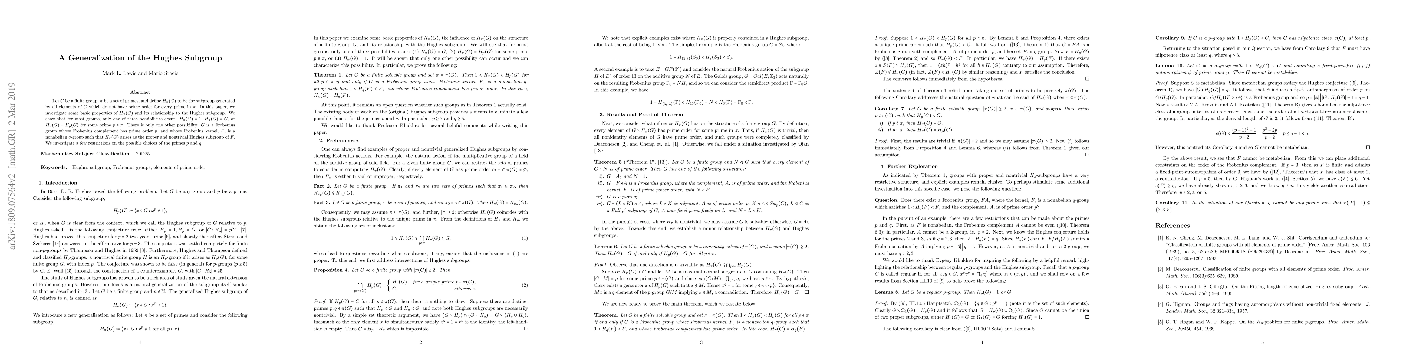 This paper investigates basic properties of the Hughes subgroup, specifically its relationship to subgroups generated by elements without prime order for a set of primes, and identifies three possible cases: trivial, entire group, or subgroup of a nonabelian q-group.