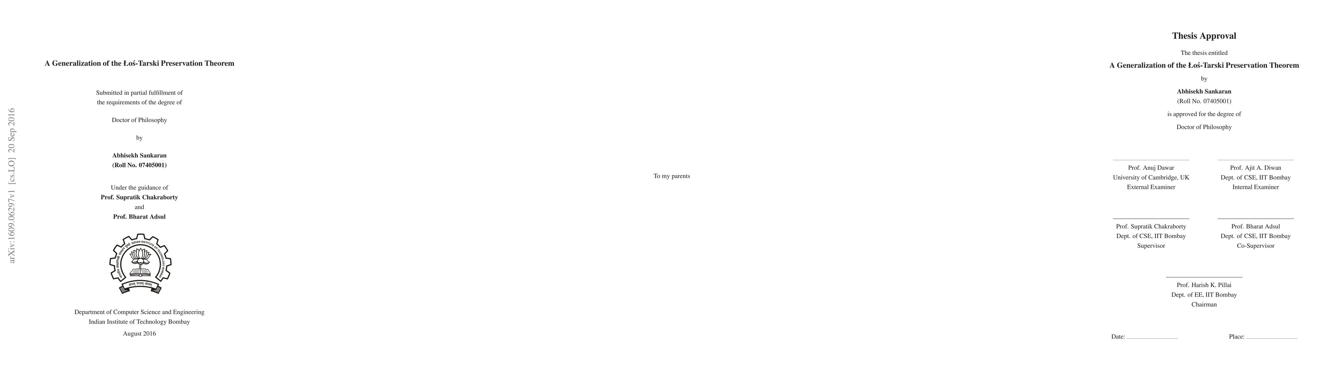 In this dissertation, we present for each natural number $k$, semantic characterizations of the $\exists^k \forall^*$ and $\forall^k \exists^*$ prefix classes of first order logic sentences, over all structures finite and infinite. This result, that we call the *generalized {\L}o\'s-Tarski theorem*, abbreviated $\mathsf{GLT}(k)$, yields the classical {\L}o\'s-Tarski preservation theorem when $k$ equals 0. It also provides new characterizations of the $\Sigma^0_2$ and $\Pi^0_2$ prefix classes, that are finer than all characterizations of these classes in the literature. Further, our semantic notions are finitary in nature, in contrast to those contained in the literature characterizations. In the context of finite structures, we formulate an abstract combinatorial property of structures, that when satisfied by a class, ensures that $\mathsf{GLT}(k)$ holds over the class. This property, that we call the *Equivalent Bounded Substructure Property*, abbreviated $\mathsf{EBSP}$, intuitively states that a large structure contains a small "logically similar" substructure. It turns out that this simply stated property is enjoyed by a variety of classes of interest in computer science: examples include words, trees (unordered, ordered or ranked), nested words, graph classes of bounded tree-depth/shrub-depth, and $m$-partite cographs. Further, $\mathsf{EBSP}$ remains preserved under various well-studied operations, such as complementation, transpose, the line-graph operation, disjoint union, cartesian and tensor products, etc. This enables constructing a wide spectrum of classes that satisfy $\mathsf{EBSP}$, and hence $\mathsf{GLT}(k)$. Remarkably, $\mathsf{EBSP}$ can be regarded as a finitary analogue of the classical downward L\"owenheim-Skolem property. In summary, this dissertation provides new notions and results in both contexts, that of all structures and that of finite structures.