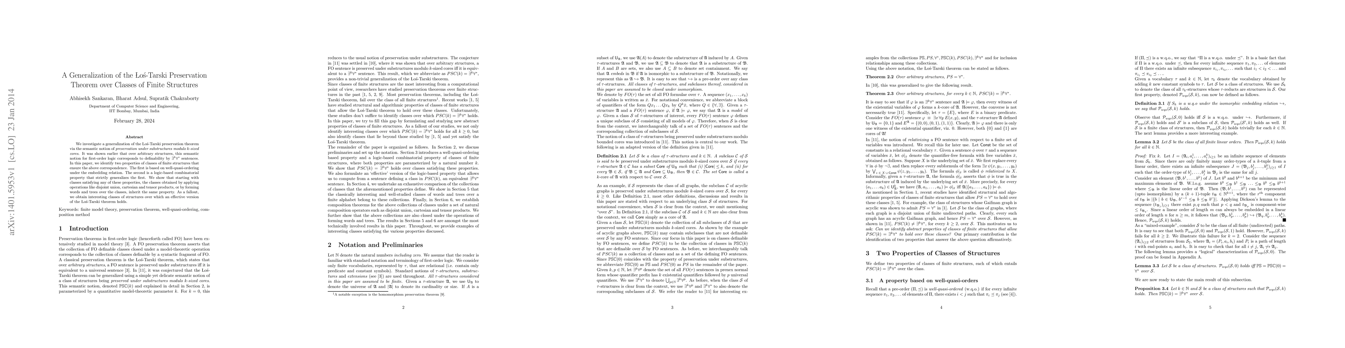 We investigate a generalization of the {\L}o\'s-Tarski preservation theorem via the semantic notion of \emph{preservation under substructures modulo $k$-sized cores}. It was shown earlier that over arbitrary structures, this semantic notion for first-order logic corresponds to definability by $\exists^k\forall^*$ sentences. In this paper, we identify two properties of classes of finite structures that ensure the above correspondence. The first is based on well-quasi-ordering under the embedding relation. The second is a logic-based combinatorial property that strictly generalizes the first. We show that starting with classes satisfying any of these properties, the classes obtained by applying operations like disjoint union, cartesian and tensor products, or by forming words and trees over the classes, inherit the same property. As a fallout, we obtain interesting classes of structures over which an effective version of the {\L}o\'s-Tarski theorem holds.