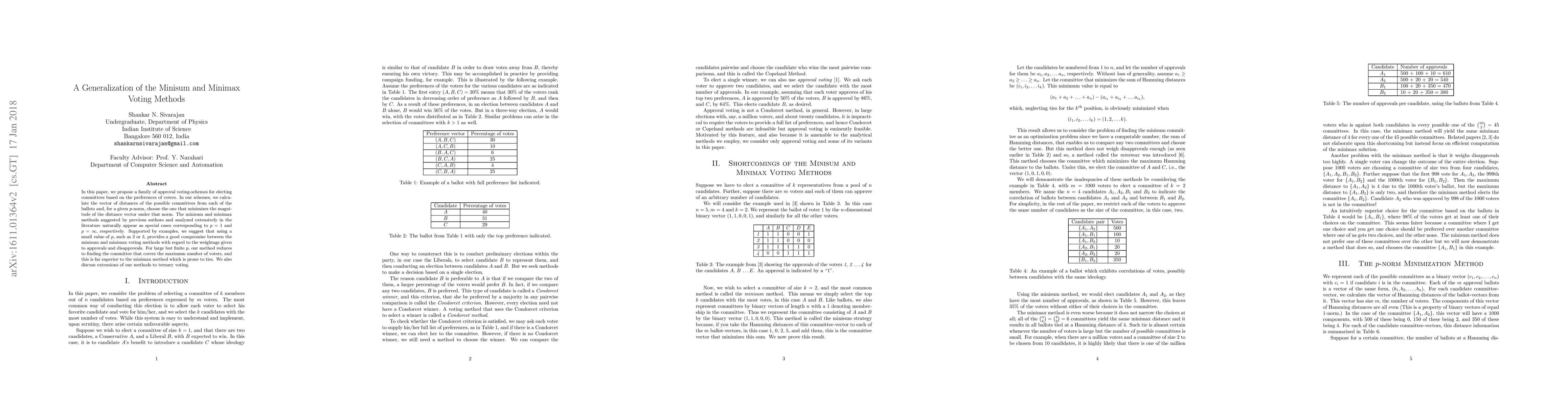 In this paper, we propose a family of approval voting-schemes for electing committees based on the preferences of voters. In our schemes, we calculate the vector of distances of the possible committees from each of the ballots and, for a given $ p $-norm, choose the one that minimizes the magnitude of the distance vector under that norm. The minisum and minimax methods suggested by previous authors and analyzed extensively in the literature naturally appear as special cases corresponding to $ p = 1 $ and $ p = \infty, $ respectively. Supported by examples, we suggest that using a small value of $ p, $ such as 2 or 3, provides a good compromise between the minisum and minimax voting methods with regard to the weightage given to approvals and disapprovals. For large but finite $ p, $ our method reduces to finding the committee that covers the maximum number of voters, and this is far superior to the minimax method which is prone to ties. We also discuss extensions of our methods to ternary voting.