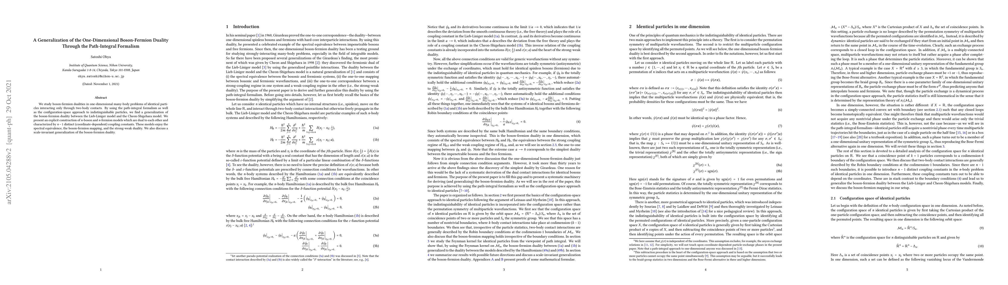 This paper generalizes the one-dimensional boson-fermion duality using the path-integral formalism, constructing $n$-boson and $n$-fermion models with $n-1$ distinct coupling constants that exhibit spectral equivalence, boson-fermion mapping, and strong-weak duality. It also introduces a scale-invariant extension of this duality.