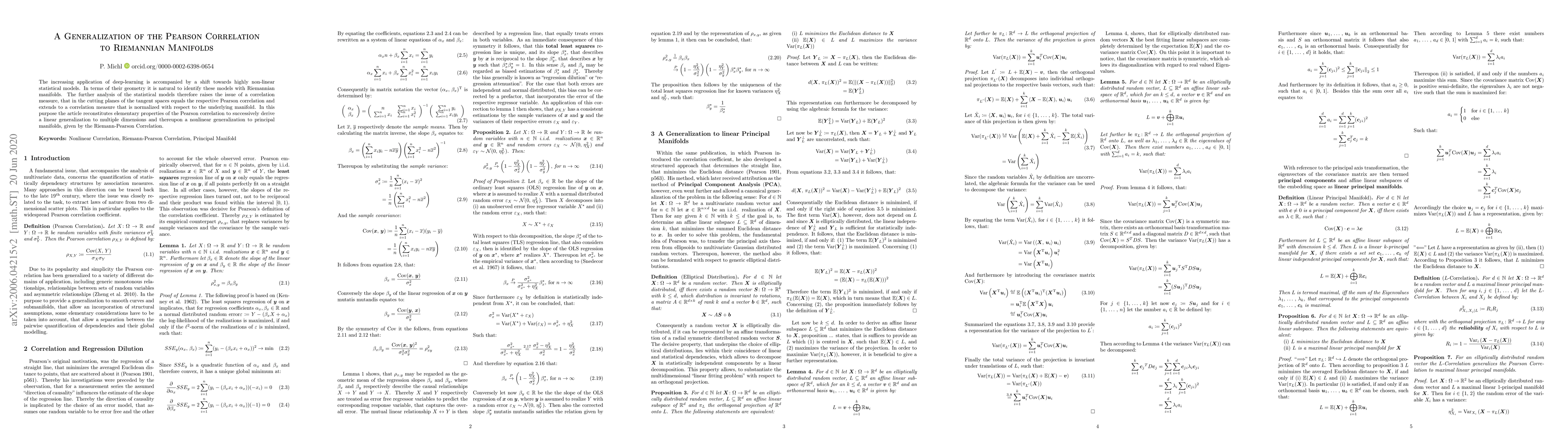 The paper introduces a Riemannian manifold generalization of the Pearson correlation, enabling non-linear statistical models to be analyzed on curved spaces, with implications for deep learning applications.