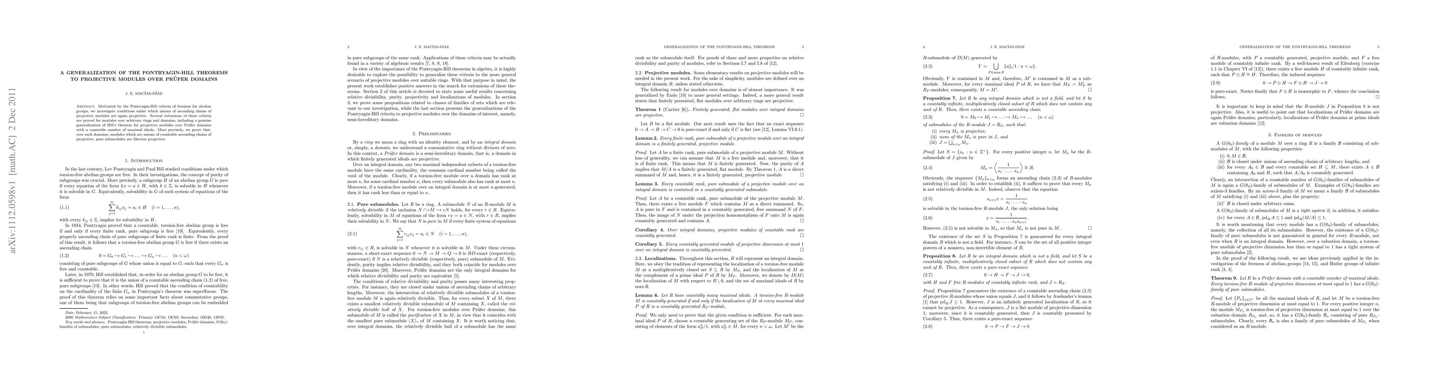 This research paper generalizes the Pontryagin-Hill theorems to projective modules over Pr"ufer domains, proving that unions of countable ascending chains of pure submodules are also projective.