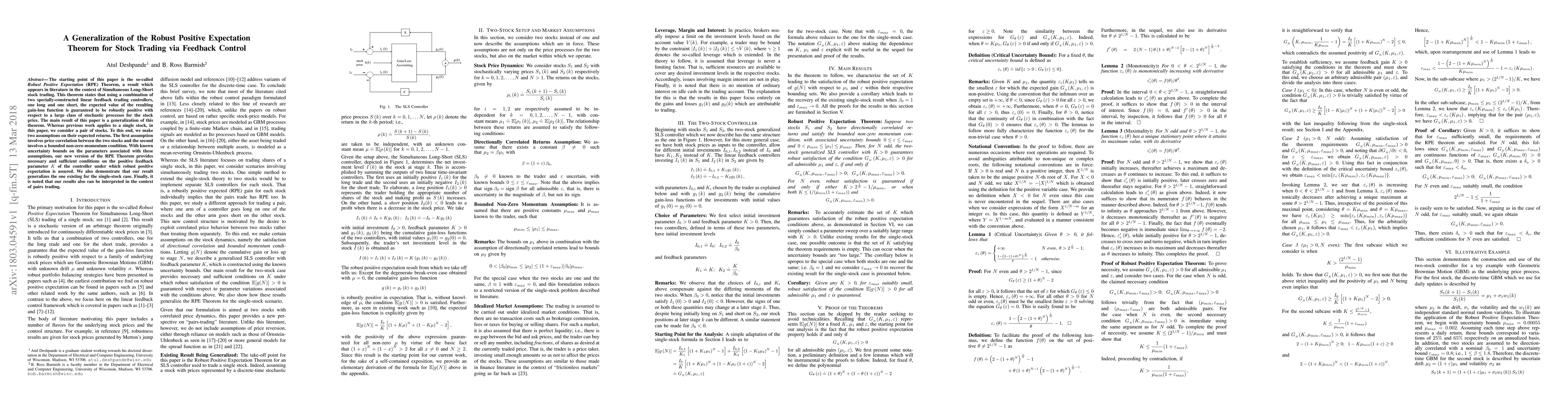 The starting point of this paper is the so-called Robust Positive Expectation (RPE) Theorem, a result which appears in literature in the context of Simultaneous Long-Short stock trading. This theorem states that using a combination of two specially-constructed linear feedback trading controllers, one long and one short, the expected value of the resulting gain-loss function is guaranteed to be robustly positive with respect to a large class of stochastic processes for the stock price. The main result of this paper is a generalization of this theorem. Whereas previous work applies to a single stock, in this paper, we consider a pair of stocks. To this end, we make two assumptions on their expected returns. The first assumption involves price correlation between the two stocks and the second involves a bounded non-zero momentum condition. With known uncertainty bounds on the parameters associated with these assumptions, our new version of the RPE Theorem provides necessary and sufficient conditions on the positive feedback parameter K of the controller under which robust positive expectation is assured. We also demonstrate that our result generalizes the one existing for the single-stock case. Finally, it is noted that our results also can be interpreted in the context of pairs trading.
