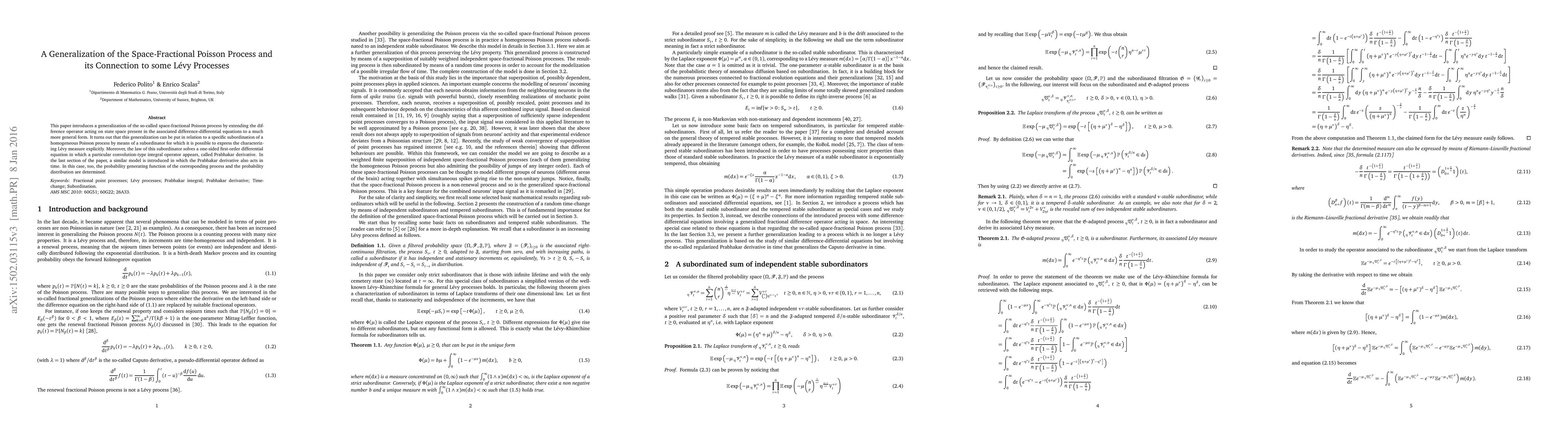 This paper generalizes the space-fractional Poisson process by extending its difference operator and relates it to a specific L\'evy process through a subordinator. The subordinator's law involves a Prabhakar derivative, and the probability generating function and distribution of the generalized process are determined.