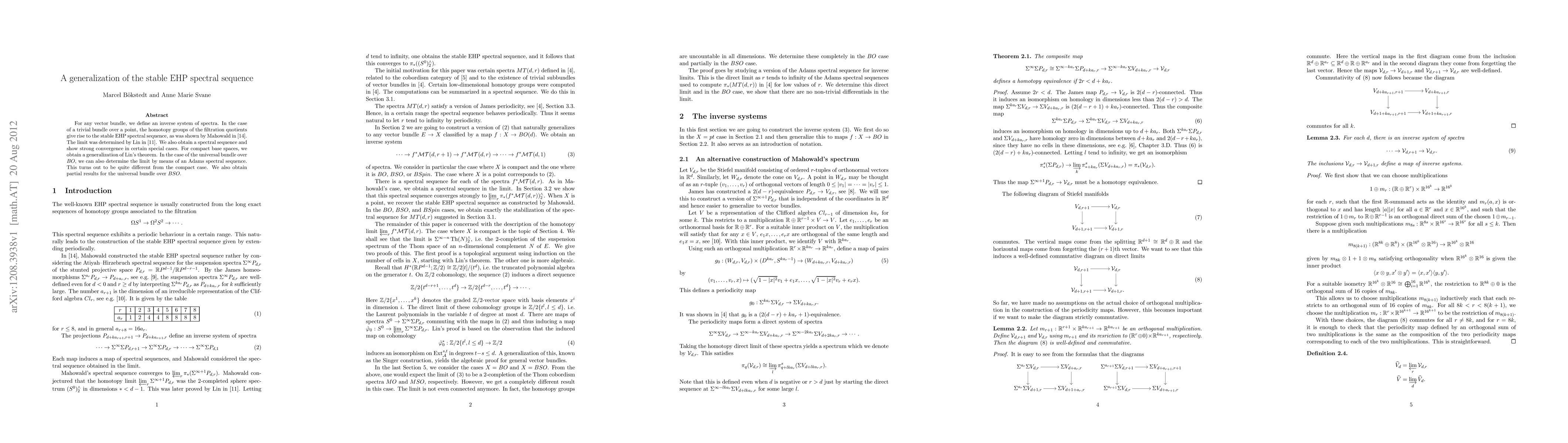 For any vector bundle, we define an inverse system of spectra. In the case of a trivial bundle over a point, the homotopy groups of the filtration quotients give rise to the stable EHP spectral sequence, as was shown by Mahowald. The limit was determined by Lin. We also obtain a spectral sequence and show strong convergence in certain special cases. For compact base spaces, we obtain a generalization of Lin's theorem. In the case of the universal bundle over BO, we can also determine the limit by means of an Adams spectral sequence. This turns out to be quite different from the compact case. We also obtain partial results for the universal bundle over BSO.