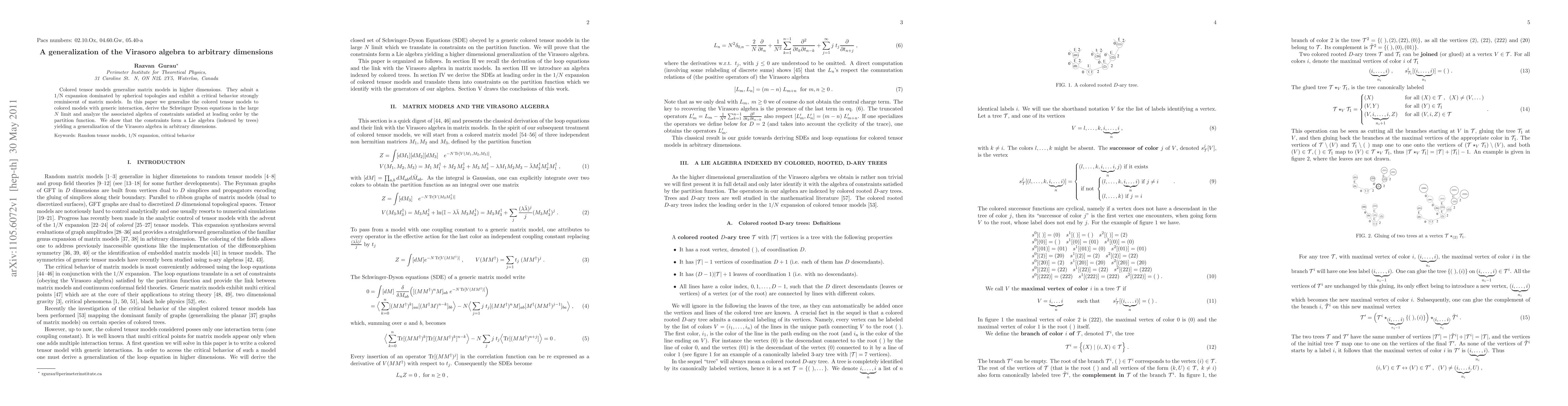 Colored tensor models generalize matrix models in higher dimensions. They admit a 1/N expansion dominated by spherical topologies and exhibit a critical behavior strongly reminiscent of matrix models. In this paper we generalize the colored tensor models to colored models with generic interaction, derive the Schwinger Dyson equations in the large N limit and analyze the associated algebra of constraints satisfied at leading order by the partition function. We show that the constraints form a Lie algebra (indexed by trees) yielding a generalization of the Virasoro algebra in arbitrary dimensions.