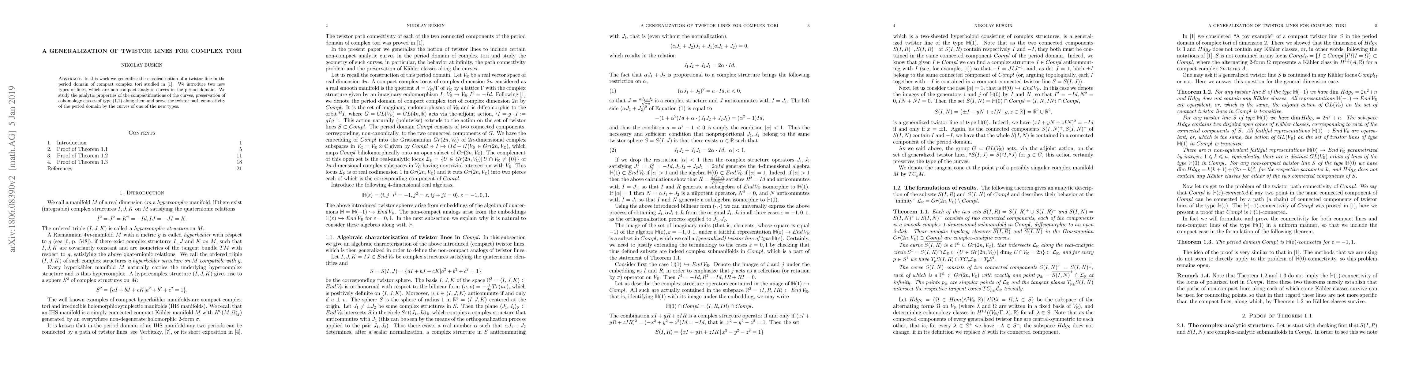 This paper generalizes the concept of twistor lines in the period domain of compact complex tori, introducing two new types of non-compact analytic curves. It examines the compactifications, cohomology class preservation, and the twistor path connectivity facilitated by these new curves.