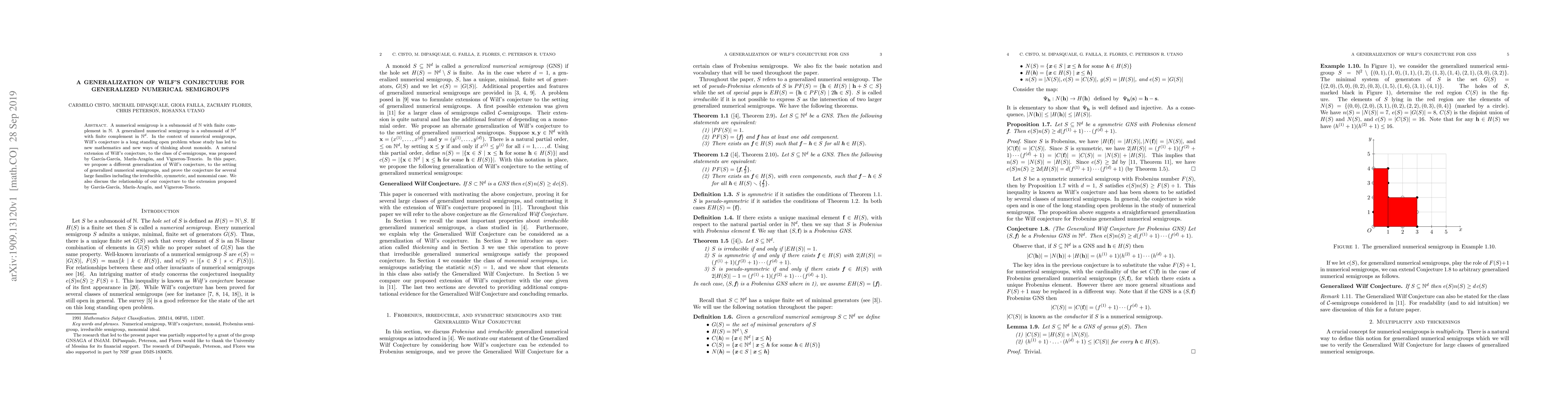 This paper generalizes Wilf's conjecture for generalized numerical semigroups, proving it for several large families like irreducible, symmetric, and monomial cases. It also explores the relationship between this new generalization and an existing extension proposed by Garc\'ia-Garc\'ia et al.