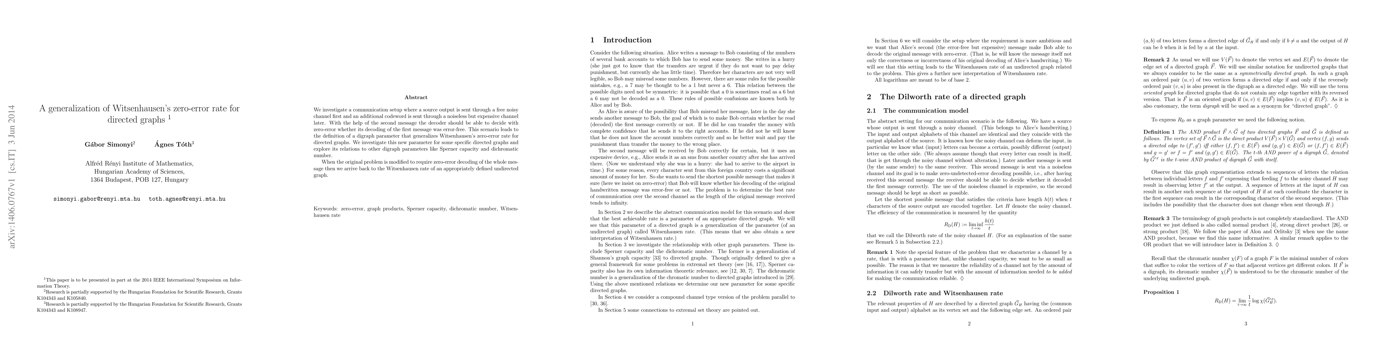 We investigate a communication setup where a source output is sent through a free noisy channel first and an additional codeword is sent through a noiseless but expensive channel later. With the help of the second message the decoder should be able to decide with zero-error whether its decoding of the first message was error-free. This scenario leads to the definition of a digraph parameter that generalizes Witsenhausen's zero-error rate for directed graphs. We investigate this new parameter for some specific directed graphs and explore its relations to other digraph parameters like Sperner capacity and dichromatic number. When the original problem is modified to require zero-error decoding of the whole message then we arrive back to the Witsenhausen rate of an appropriately defined undirected graph.
