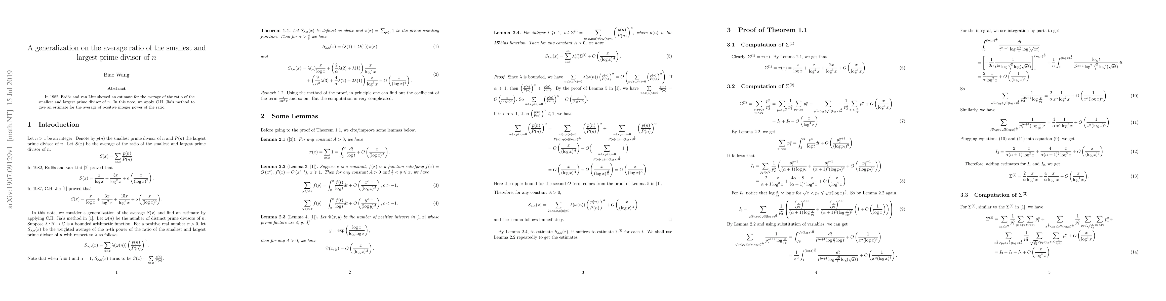Summary: This paper generalizes the 1982 estimate by Erdős and van Lint on the average ratio of the smallest and largest prime divisor of $n$, using C.H. Jia's method to provide an estimate for the average of positive integer powers of this ratio.