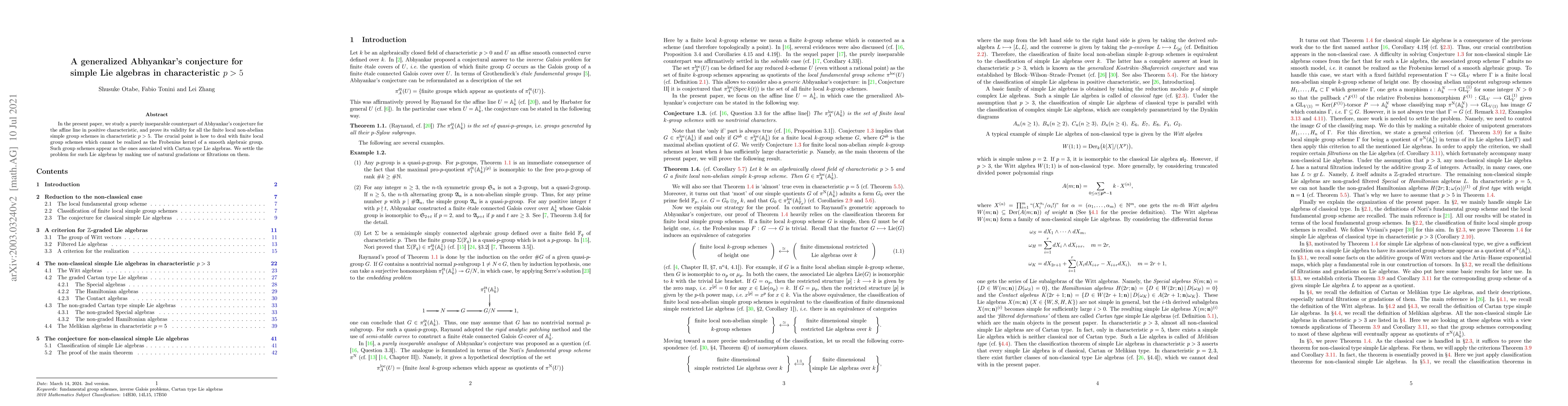 This paper proves a generalized version of Abhyankar's conjecture for affine lines in positive characteristic $p>5$ concerning finite local non-abelian simple group schemes. The study focuses on handling finite local group schemes associated with Cartan type Lie algebras, employing natural gradations or filtrations to resolve the problem.