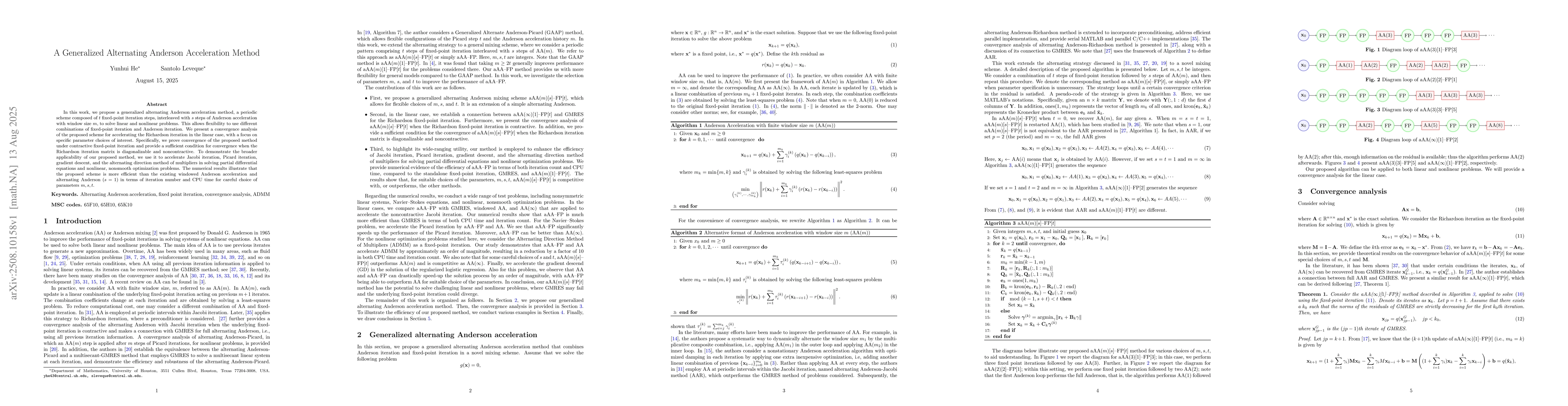 In this work, we propose a generalized alternating Anderson acceleration method, a periodic scheme composed of $t$ fixed-point iteration steps, interleaved with $s$ steps of Anderson acceleration with window size $m$, to solve linear and nonlinear problems. This allows flexibility to use different combinations of fixed-point iteration and Anderson iteration. We present a convergence analysis of the proposed scheme for accelerating the Richardson iteration in the linear case, with a focus on specific parameter choices of interest. Specifically, we prove convergence of the proposed method under contractive fixed-point iteration and provide a sufficient condition for convergence when the Richardson iteration matrix is diagonalizable and noncontractive. To demonstrate the broader applicability of our proposed method, we use it to accelerate Jacobi iteration, Picard iteration, gradient descent, and the alternating direction method of multipliers in solving partial differential equations and nonlinear, nonsmooth optimization problems. The numerical results illustrate that the proposed scheme is more efficient than the existing windowed Anderson acceleration and alternating Anderson ($s=1$) in terms of iteration number and CPU time for careful choice of parameters $m, s, t$.