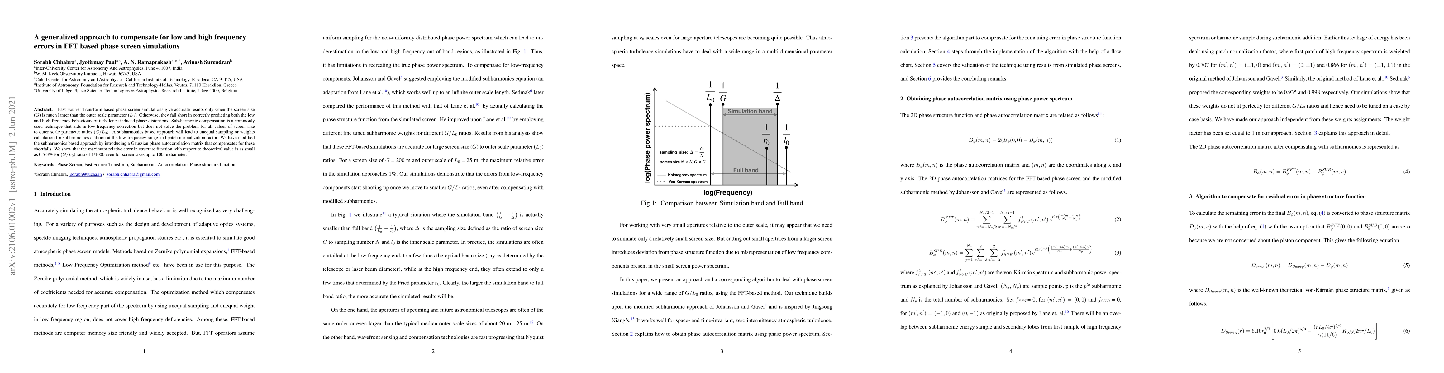 Researchers have developed a new approach to compensate for errors in Fast Fourier Transform phase screen simulations, improving accuracy for low- and high-frequency turbulence predictions. The method reduces relative error to 0.5-3% even for small screen sizes.