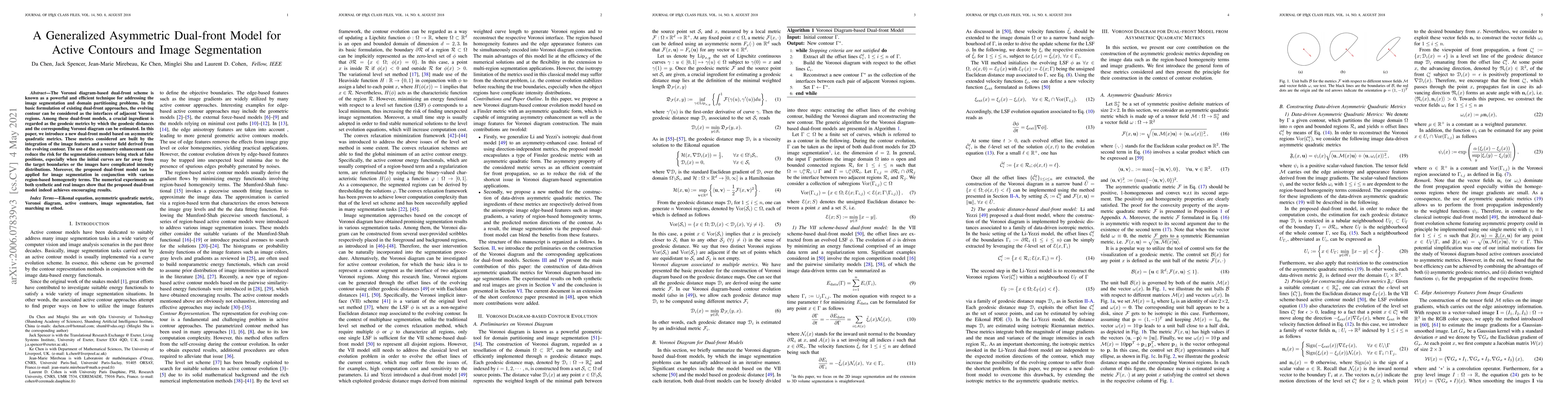 This paper proposes an asymmetric quadratic metrics dual-front active contour model that integrates image features and vector fields to enhance segmentation accuracy, reducing contour shortcut and leakage issues. The model demonstrates promising results in both synthetic and real image segmentation tasks.