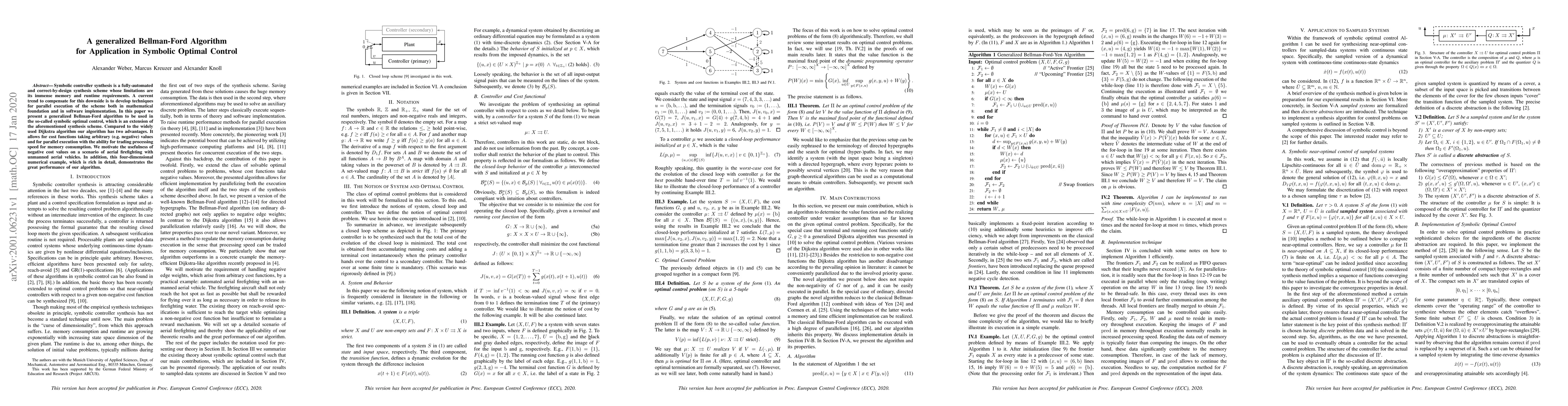 This paper introduces a generalized Bellman-Ford algorithm for symbolic optimal control, offering advantages over the Dijkstra algorithm by accommodating arbitrary cost functions, including negative values, and enabling parallel execution to balance speed and memory. The algorithm's effectiveness is demonstrated through a detailed aerial firefighting scenario involving unmanned aerial vehicles.