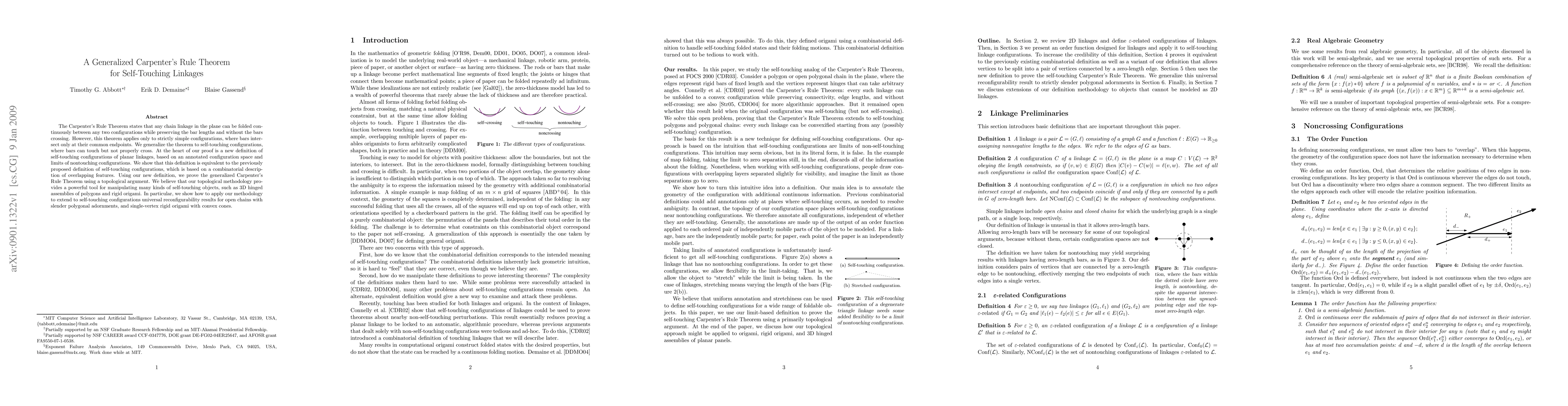 Researchers develop a generalized Carpenter's Rule Theorem for self-touching linkages, enabling continuous folding without crossing while preserving bar lengths, applicable to non-simple configurations.