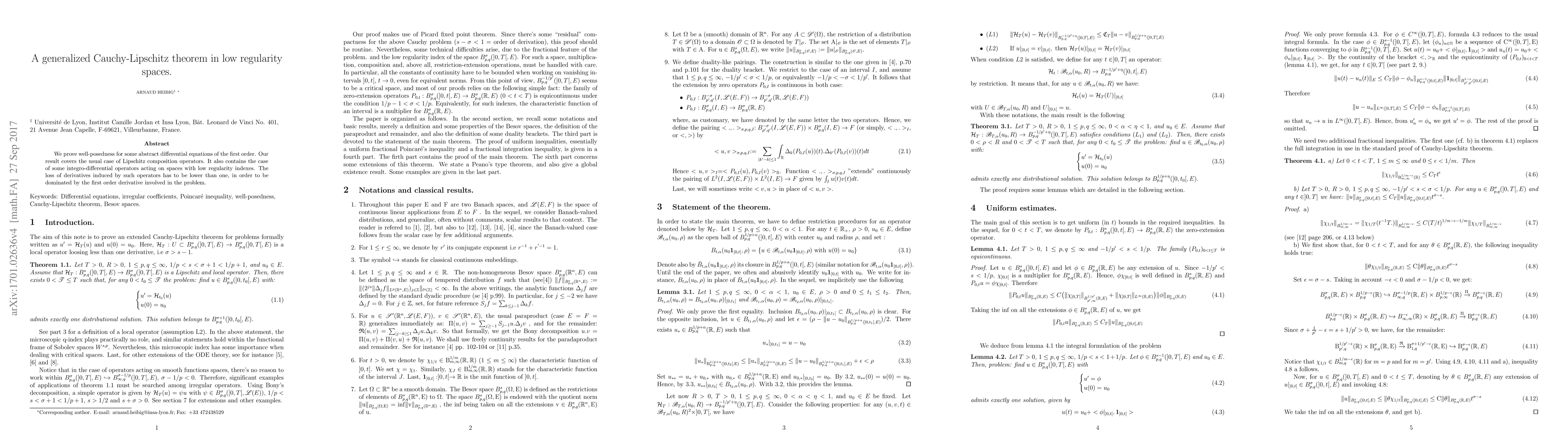 Researchers prove well-posedness for abstract differential equations with low regularity indexes, extending the Cauchy-Lipschitz theorem to include integro-differential operators.