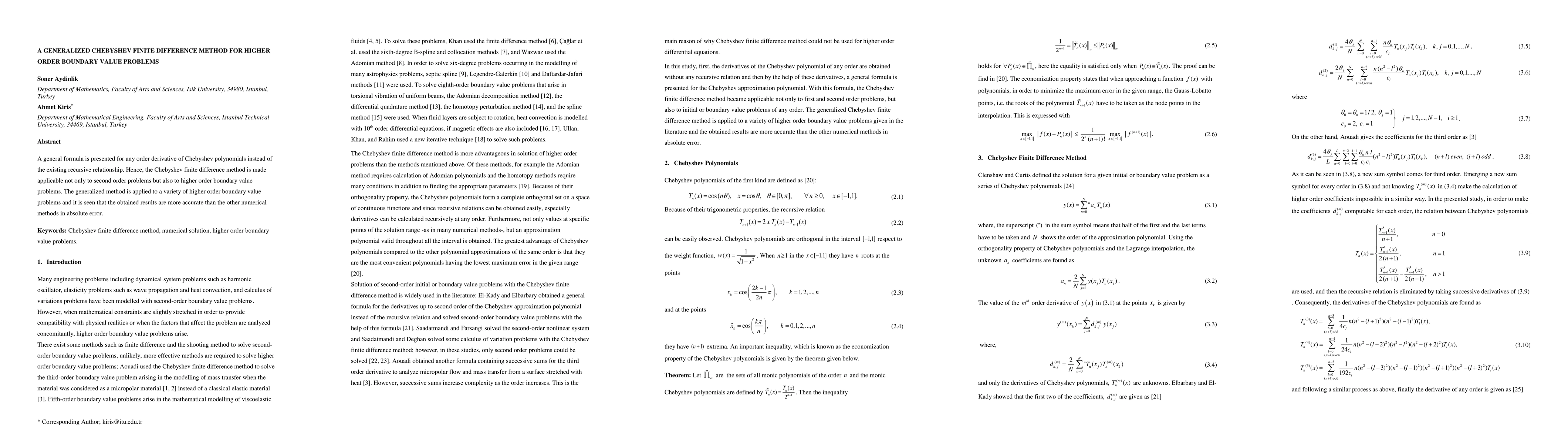 A general formula is presented for any order derivative of Chebyshev polynomials instead of the existing recursive relationship. Hence, the Chebyshev finite difference method is made applicable not only to second order problems but also to higher order boundary value problems. The generalized method is applied to a variety of higher order boundary value problems and it is seen that the obtained results are more accurate than the other numerical methods in absolute error.