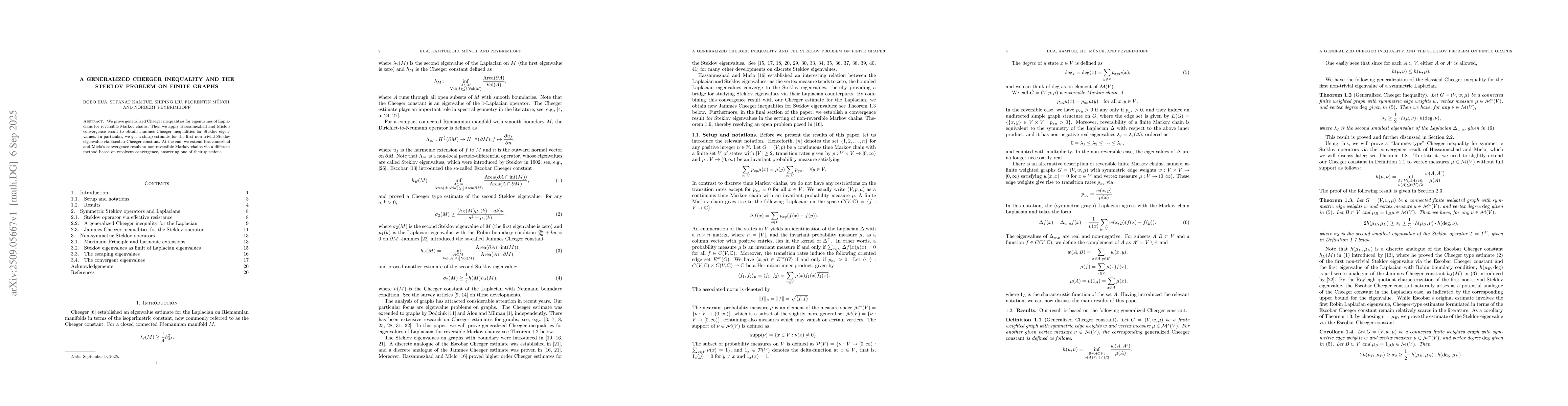 We prove generalized Cheeger inequalities for eigenvalues of Laplacians for reversible Markov chains. Then we apply Hassannezhad and Miclo's convergence result to obtain Jammes Cheeger inequalities for Steklov eigenvalues. In particular, we get a sharp estimate for the first non-trivial Steklov eigenvalue via Escobar Cheeger constant. At the end, we extend Hassannezhad and Miclo's convergence result to non-reversible Markov chains via a different method based on resolvent convergence, answering one of their questions.