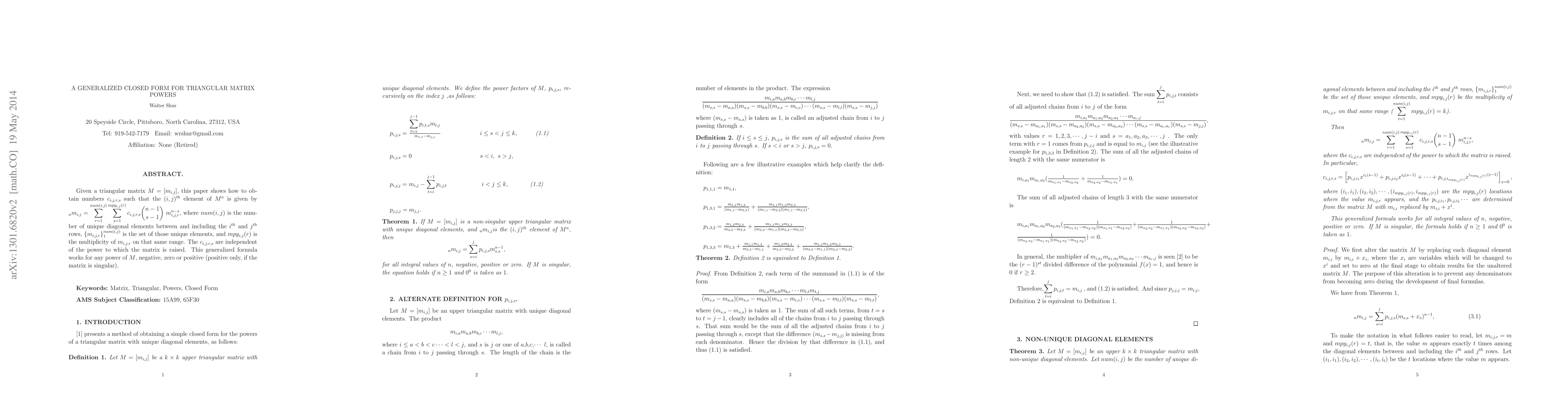 This paper shows how to obtain a simple closed form for the elements of a triangular matrix raised to the nth power.
