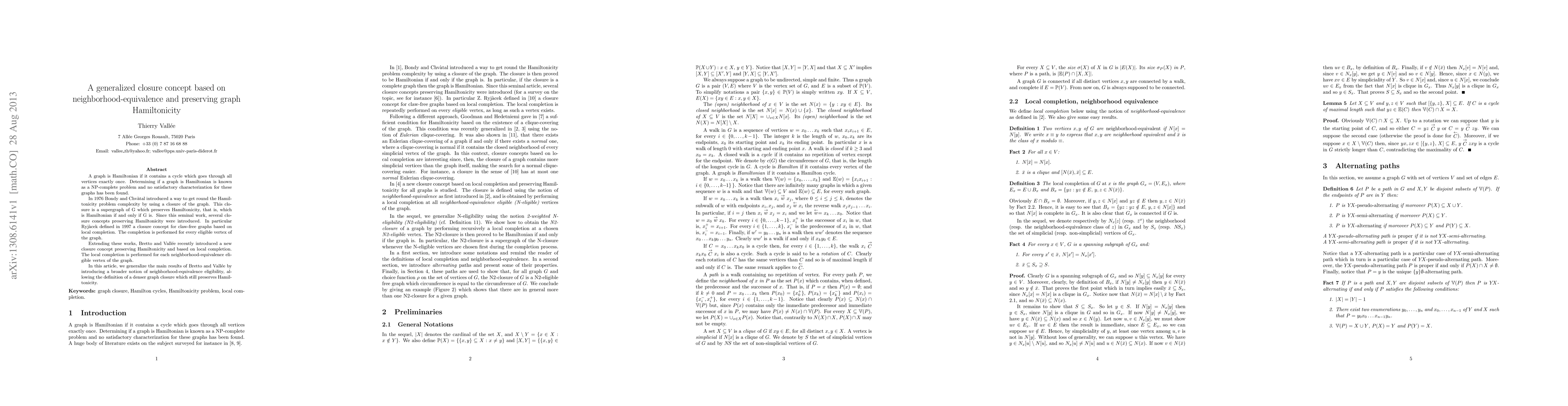 A graph is Hamiltonian if it contains a cycle which goes through all vertices exactly once. Determining if a graph is Hamiltonian is known as a NP-complete problem and no satisfactory characterization for these graphs has been found. In 1976 Bondy and Chvatal introduced a way to get round the Hamiltonicity problem complexity by using a closure of the graph. This closure is a supergraph of G which preserves Hamiltonicity, that is, which is Hamiltonian if and only if G is. Since this seminal work, several closure concepts preserving Hamiltonicity were introduced. In particular Ryjacek defined in 1997 a closure concept for claw-free graphs based on local completion. The completion is performed for every eligible vertex of the graph. Extending these works, Vallee and Bretto recently introduced a new closure concept preserving Hamiltonicity and based on local completion. The local completion is performed for each neighborhood-equivalence eligible vertex of the graph. In this article, we generalize the main results of Vallee and Bretto by introducing a broader notion of neighborhood equivalence eligibility, allowing the definition of a denser graph closure which still preserves Hamiltonicity.