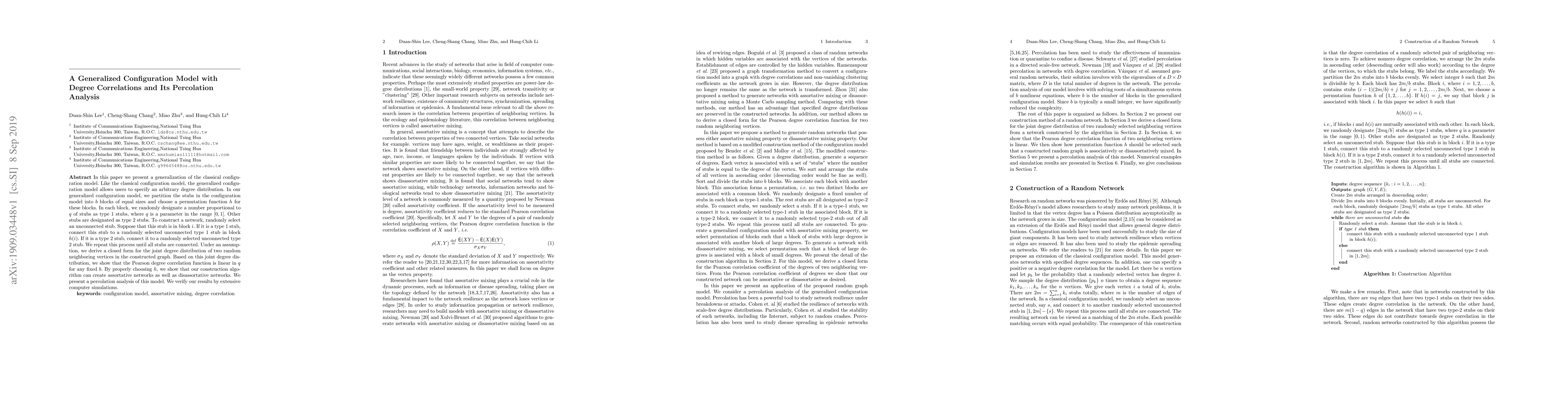 In this paper we present a generalization of the classical configuration model. Like the classical configuration model, the generalized configuration model allows users to specify an arbitrary degree distribution. In our generalized configuration model, we partition the stubs in the configuration model into b blocks of equal sizes and choose a permutation function h for these blocks. In each block, we randomly designate a number proportional to q of stubs as type 1 stubs, where q is a parameter in the range [0; 1]. Other stubs are designated as type 2 stubs. To construct a network, randomly select an unconnected stub. Suppose that this stub is in block i. If it is a type 1 stub, connect this stub to a randomly selected unconnected type 1 stub in block h(i). If it is a type 2 stub, connect it to a randomly selected unconnected type 2 stub. We repeat this process until all stubs are connected. Under an assumption, we derive a closed form for the joint degree distribution of two random neighboring vertices in the constructed graph. Based on this joint degree distribution, we show that the Pearson degree correlation function is linear in q for any fixed b. By properly choosing h, we show that our construction algorithm can create assortative networks as well as disassortative networks. We present a percolation analysis of this model. We verify our results by extensive computer simulations.