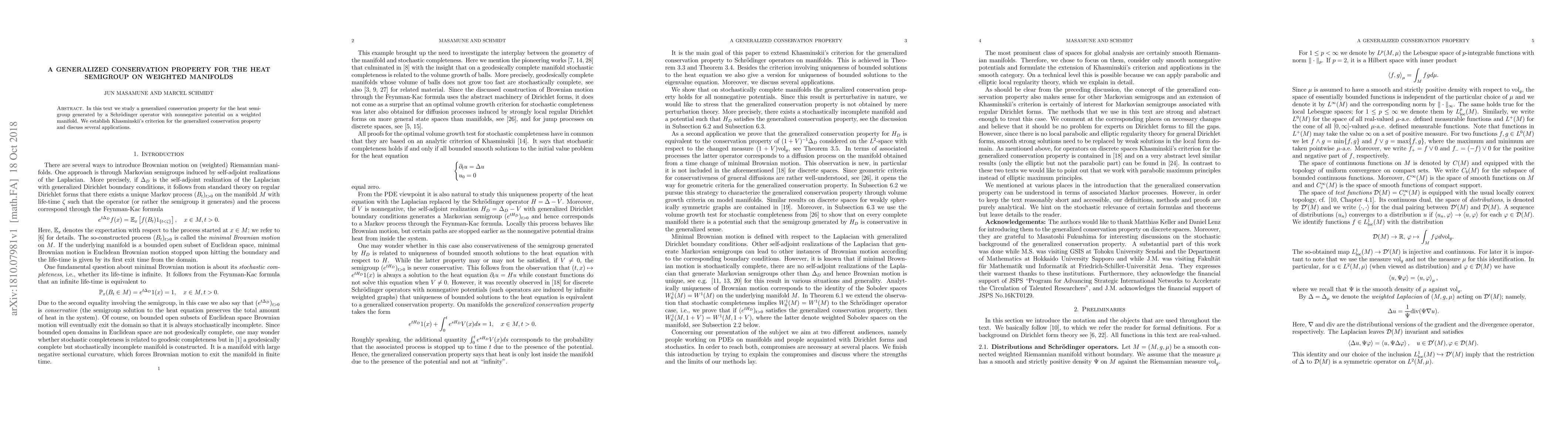 In this text we study a generalized conservation property for the heat semigroup generated by a Schr\"odinger operator with nonnegative potential on a weighted manifold. We establish Khasminskii's criterion for the generalized conservation property and discuss several applications.