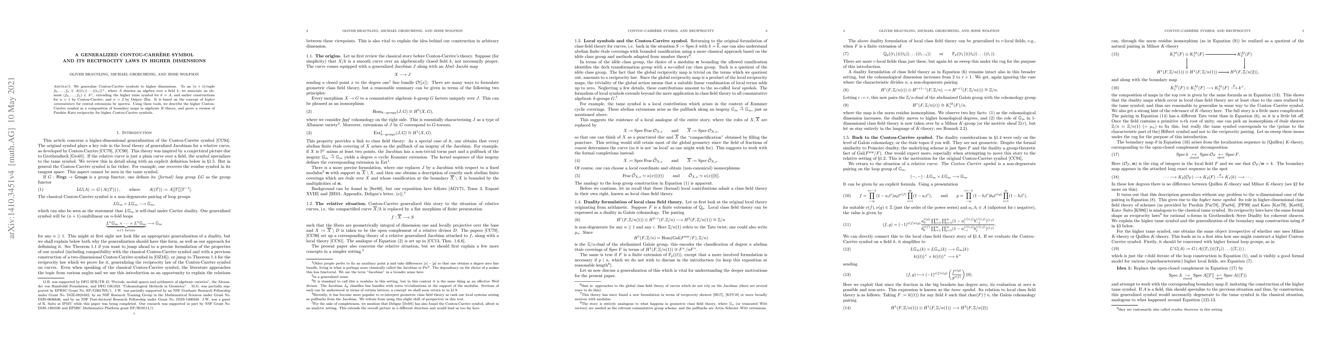 This paper generalizes the Contou-Carrère symbol to higher dimensions using higher commutators and algebraic $K$-theory, extending previous work by Arbarello-de Concini-Kac and others. It establishes a new reciprocity law for these higher symbols, paralleling Parshin-Kato reciprocity.