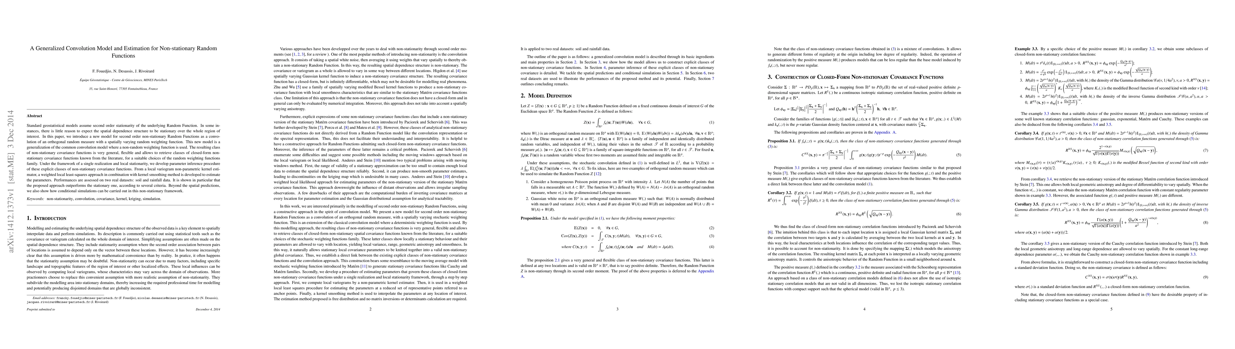 This paper proposes a generalized convolution model for non-stationary random functions, using an orthogonal random measure and a spatially varying weighting function. It develops parameter estimation techniques and demonstrates superior performance over stationary models using soil and rainfall data.